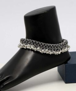 Adorn your feet with the timeless beauty of this Oxidised Handmade Payal, a stunning traditional Ghunghroo anklet designed for girls who appreciate a touch of elegance and tradition in their accessories. Handcrafted with care, this oxidised anklet showcases the perfect blend of classic Indian jewelry design and modern aesthetics, making it an ideal accessory for special occasions or daily wear. The delicate sound of the ghunghroo bells adds a charming and subtle musical touch with every step, elevating your entire look with grace and style.