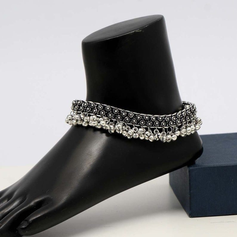 The oxidised silver finish of this payal gives it a rustic, vintage charm that complements any skin tone, making it a versatile addition to your jewelry collection. Perfect for girls and women of all ages, this traditional Ghunghroo anklet can also be a thoughtful gift for loved ones on special occasions such as festivals, birthdays, or as a symbol of cultural pride.