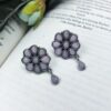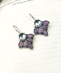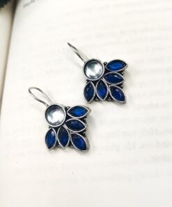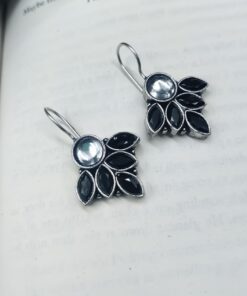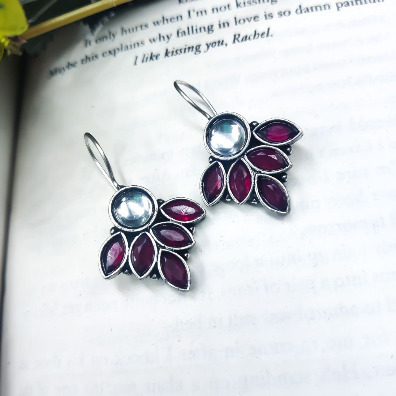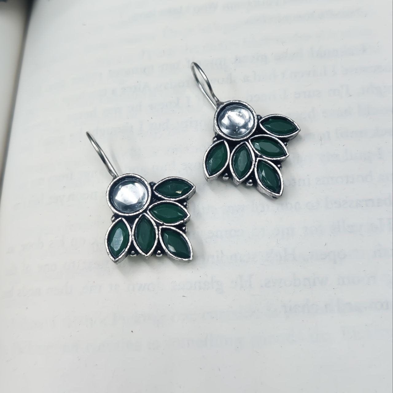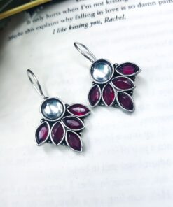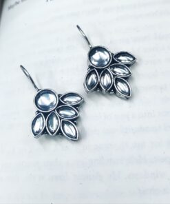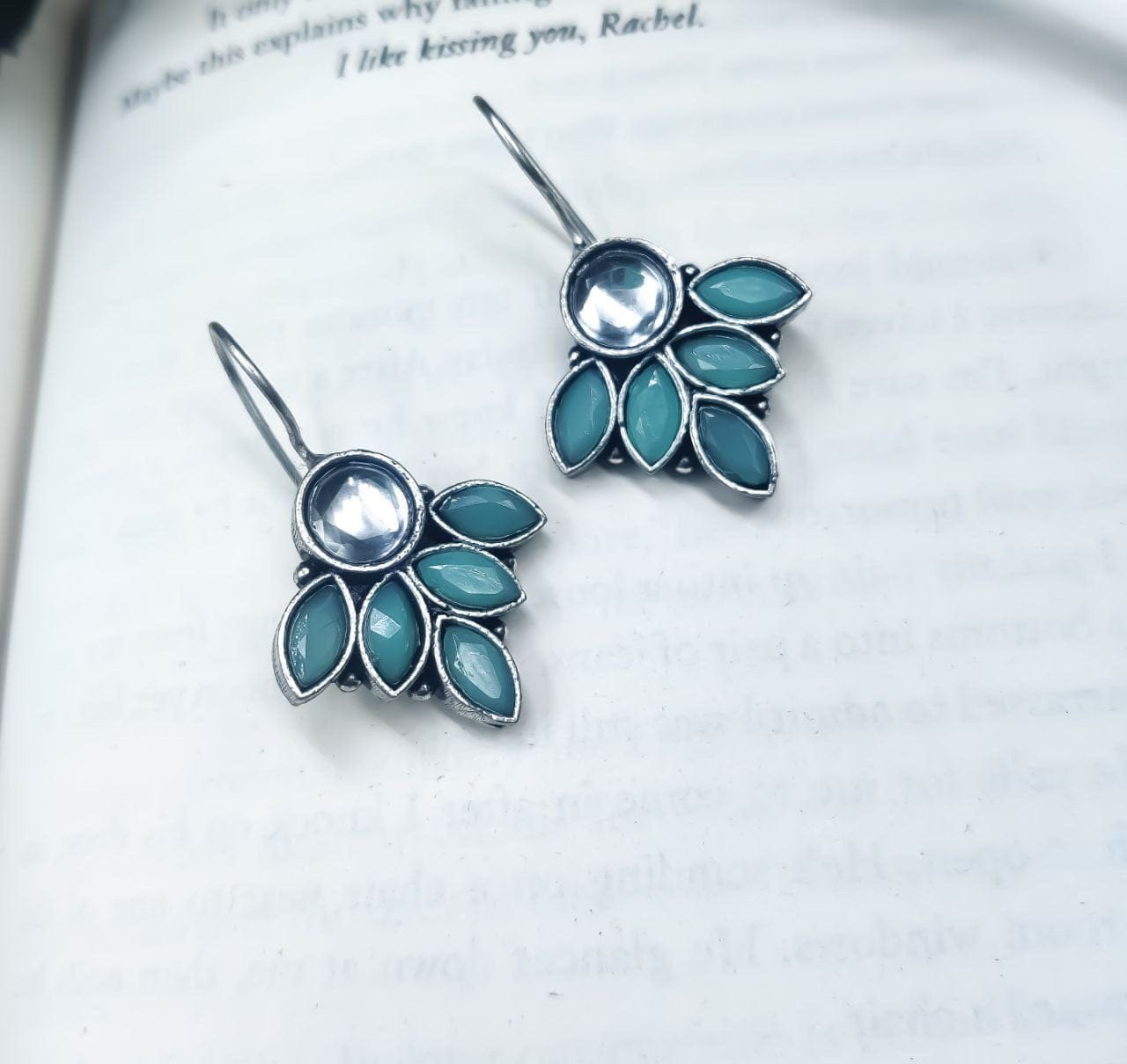 The Silver Replica Oxidised Hook Earrings with Stone Work are exquisite pieces of jewelry that combine elegance and nature-inspired design. Here’s a description of these stunning earrings: