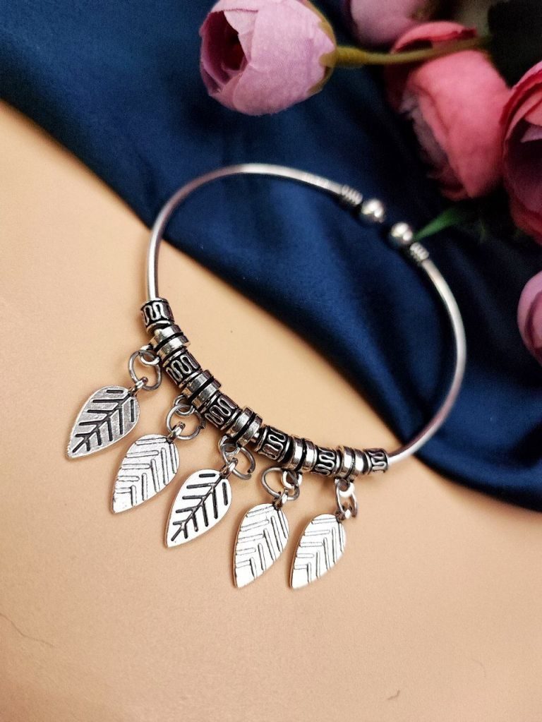 Stylish German Silver Leaf Charm Bangles | Perfect Ethnic Jewelry For Women