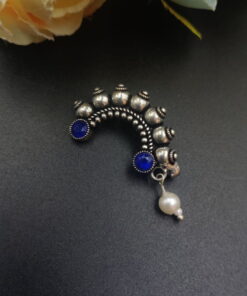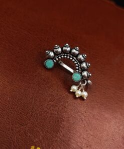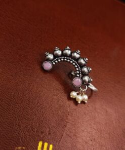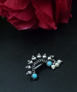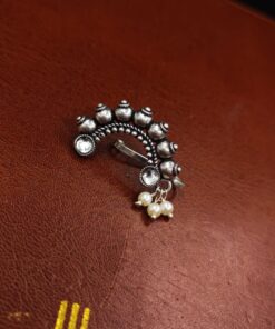 In conclusion, our Antique Oxidized Silver Plated Marathi Nath Press Nosepin is more than just a piece of jewelry; it is a symbol of tradition, culture, and heritage. With its exquisite design, historical significance, and versatile styling options, it is sure to become a treasured addition to your jewelry collection. Whether worn on special occasions or as part of your everyday attire, this nosepin celebrates the timeless beauty of Maharashtrian jewelry and allows you to connect with your roots in style.