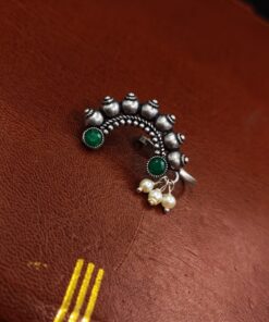 Crafted with the utmost precision and inspired by the rich cultural heritage of Maharashtra, our Antique Silver Plated Oxidized Marathi Nath Press Nosepin is a timeless piece of traditional Maharashtrian jewelry that embodies elegance and tradition. In this comprehensive description, we’ll delve into the intricate design, historical significance, cultural context, and craftsmanship of this exquisite nosepin.