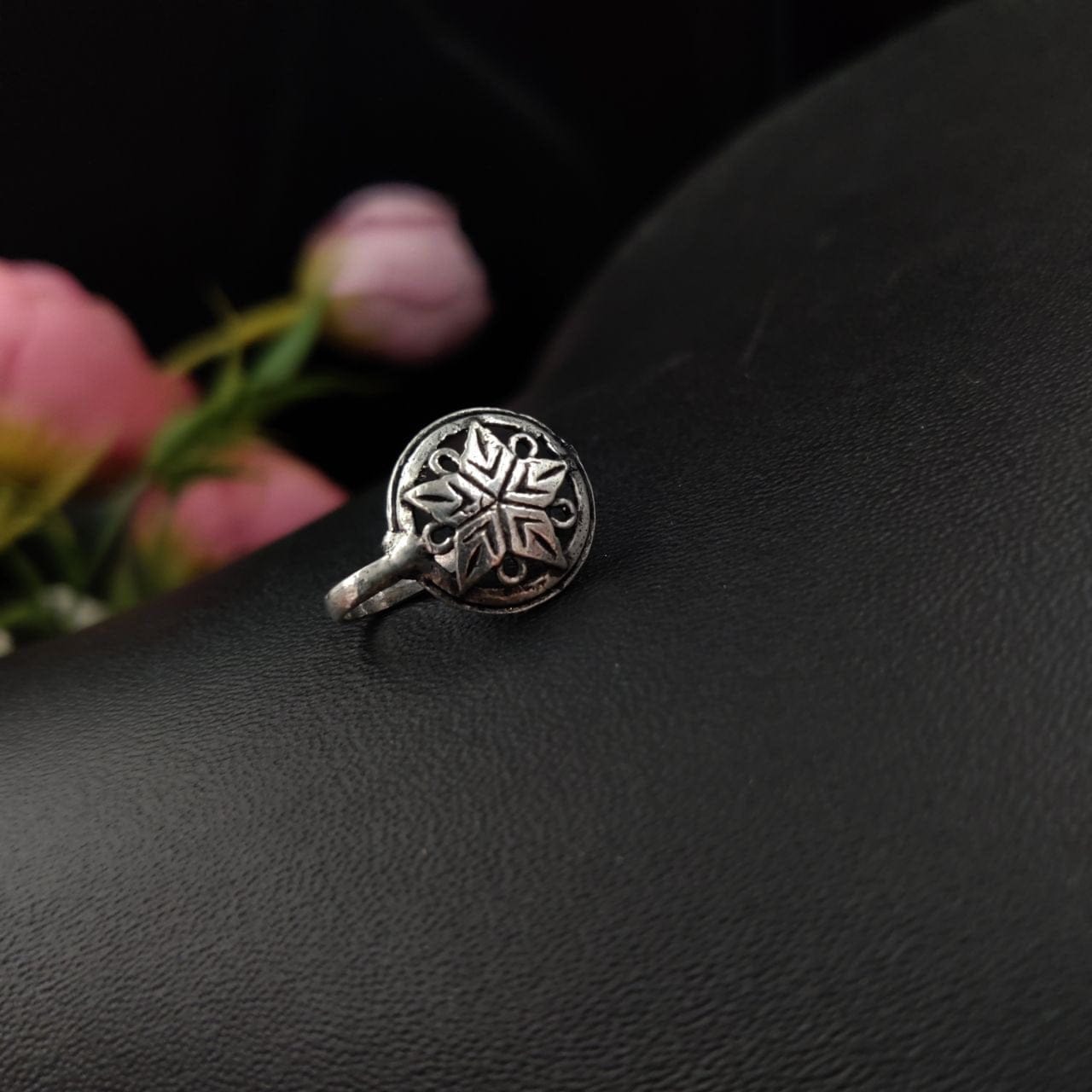 Silver Plated Round Nosepin | Best Oxidised Nose Ring Without Piercing