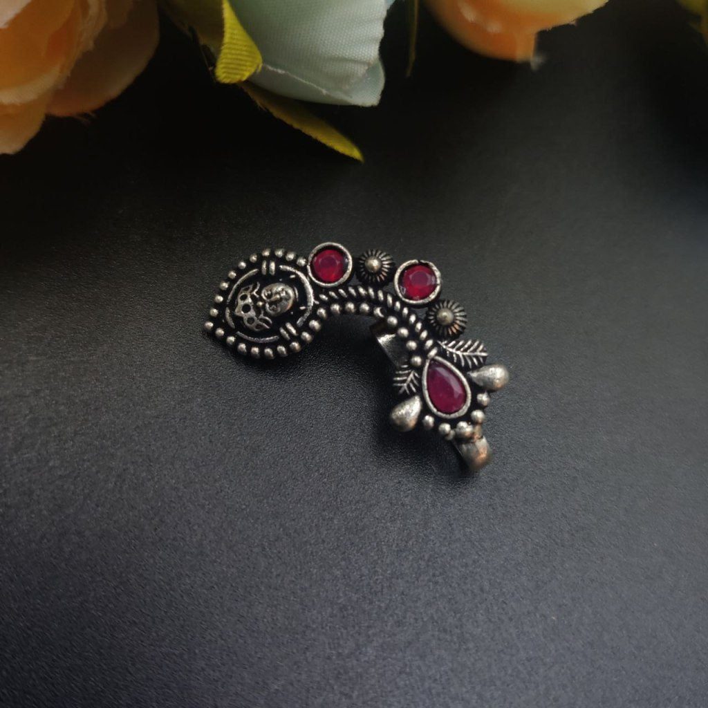 Oxidised Silver Plated Marathi Durga Nath Press Nosepin - Image 2