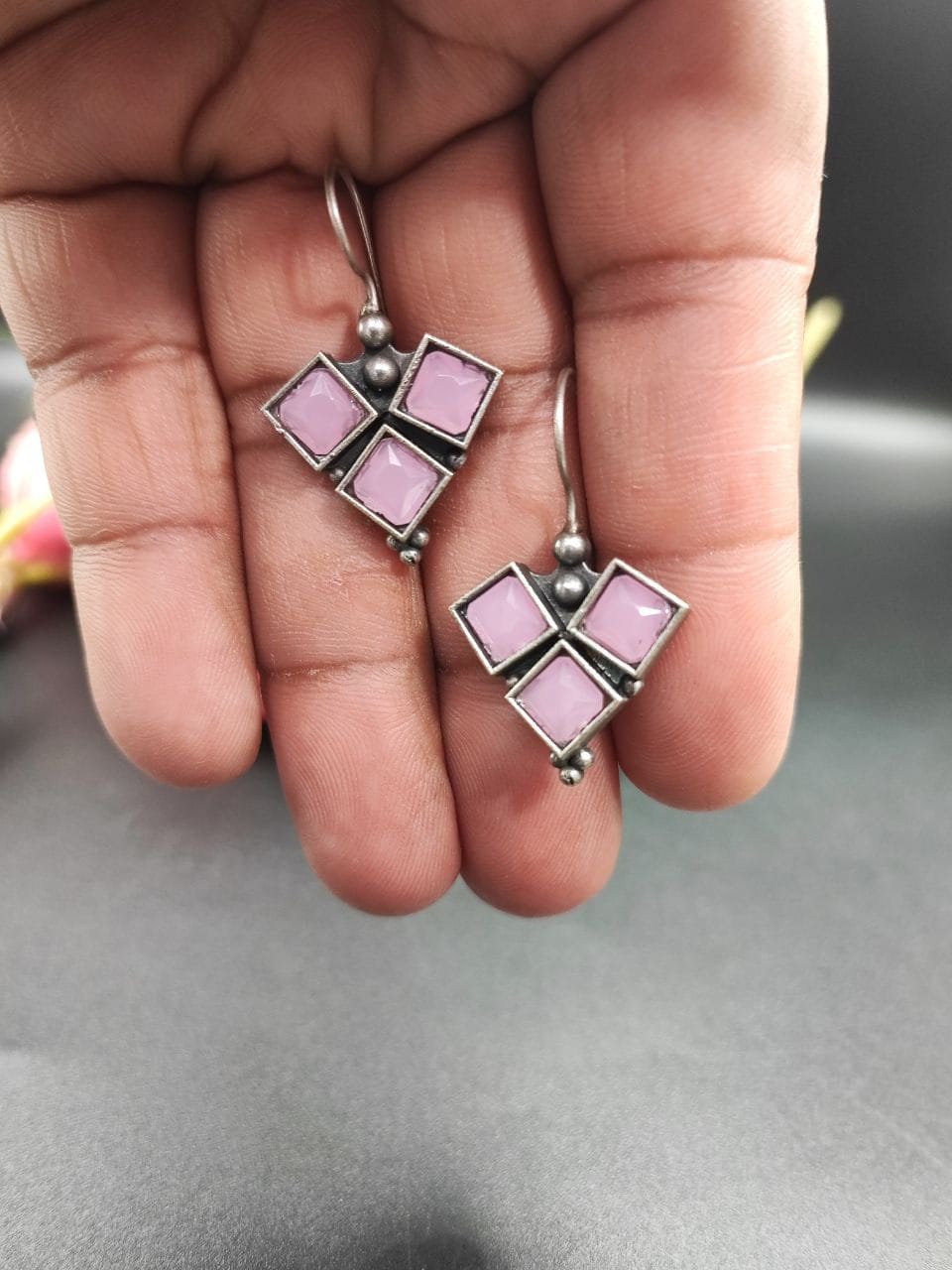 Introducing our oxidized Hook earrings designed especially for girls. These Daily Wear Silver look alike Earrings are a perfect blend of timeless elegance and modern charm, making them an ideal accessory for any occasion. Crafted with attention to detail, these stud Oxidised Stone earrings feature a Daily Wear that adds a touch of sophistication to any outfit. The oxidized finish lends a vintage and antique look to the earrings, creating a unique and trendy appeal. The oxidized coating adds depth and texture to the metal, enhancing the overall design.