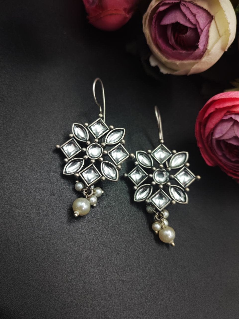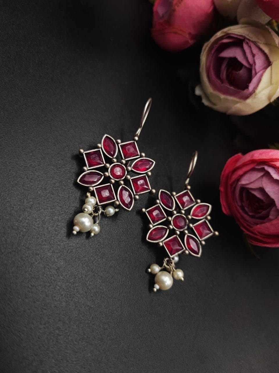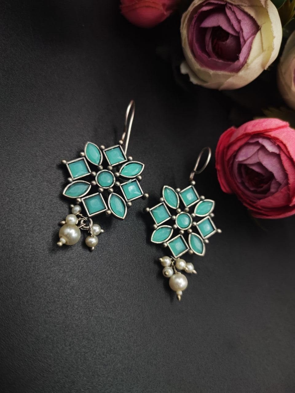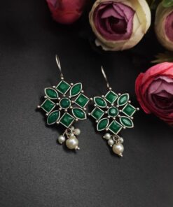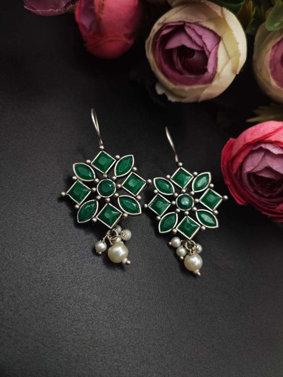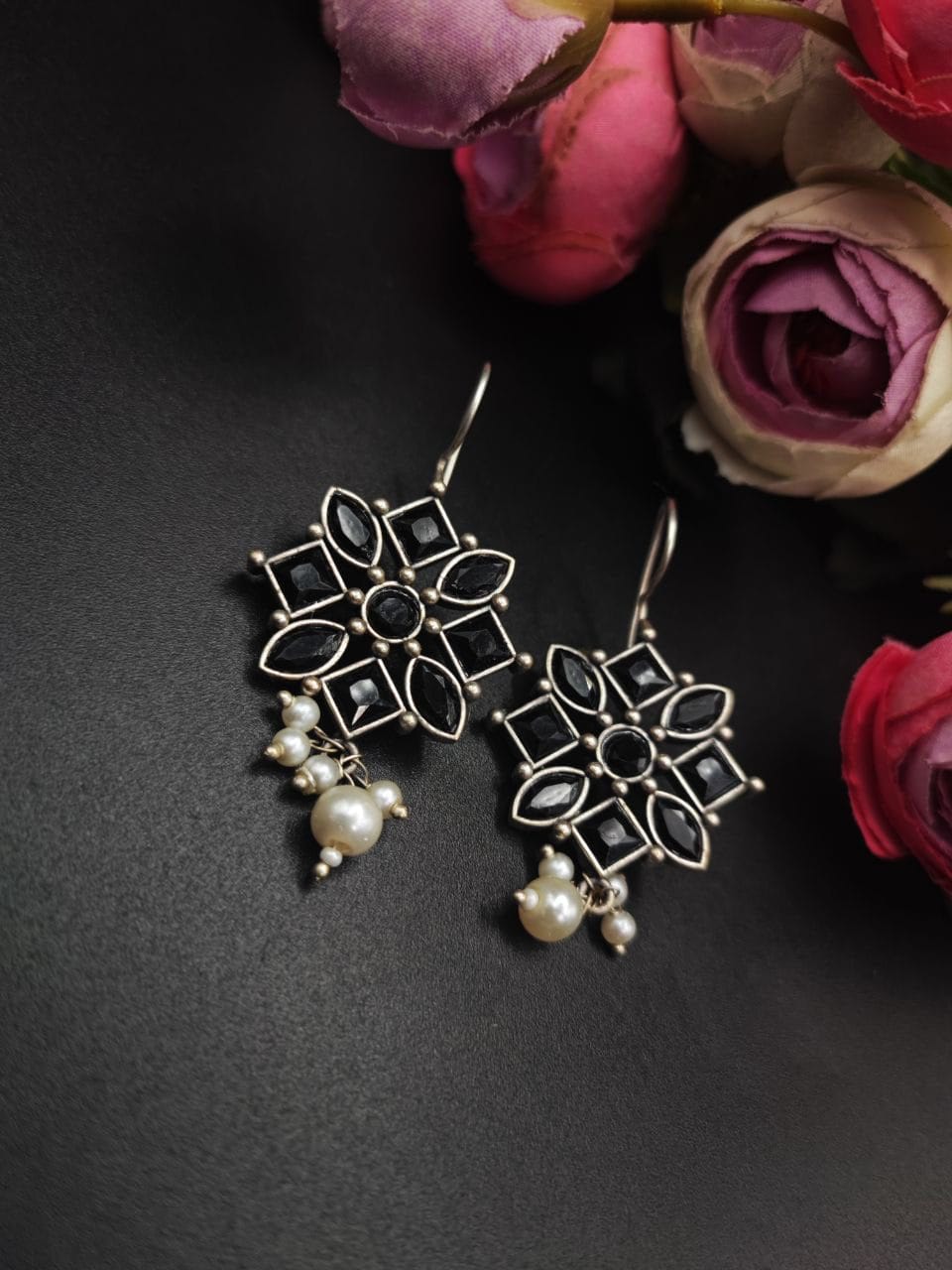 Oxidised Stone Hook Earrings – Daily Wear Earrings