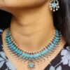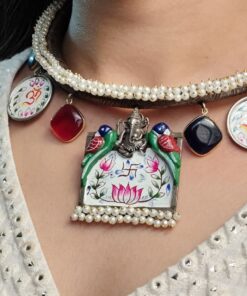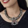 Oxidized Beautiful Ganesha Hasli Necklace | Parrot Design Monalisa Stone & Pearl Work Jewelry