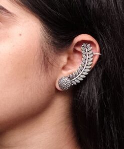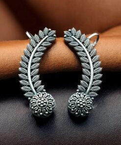 Oxidized Leaf Earcuff | Silver Replica Ethnic Design Unique Handmade Jewelry For Girls