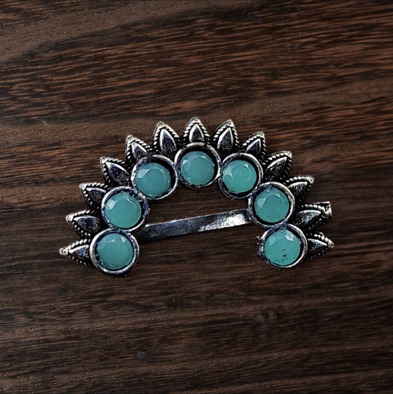 The Maharashtrian Nath, also known as a nosepin, holds deep cultural significance in Maharashtra, symbolizing elegance, grace, and tradition. Worn by women during special events such as weddings, religious ceremonies, and festivals, this Marathi Nosepin is an essential part of traditional Maharashtrian attire. This oxidized nosepin showcases an authentic design, featuring intricate patterns and detailing that reflect the artistry and craftsmanship of traditional Maharashtrian jewelry. The darkened oxidized finish adds a timeless, antique touch to this classic piece, making it ideal for modern fashion enthusiasts who love ethnic accessories with a vintage twist.