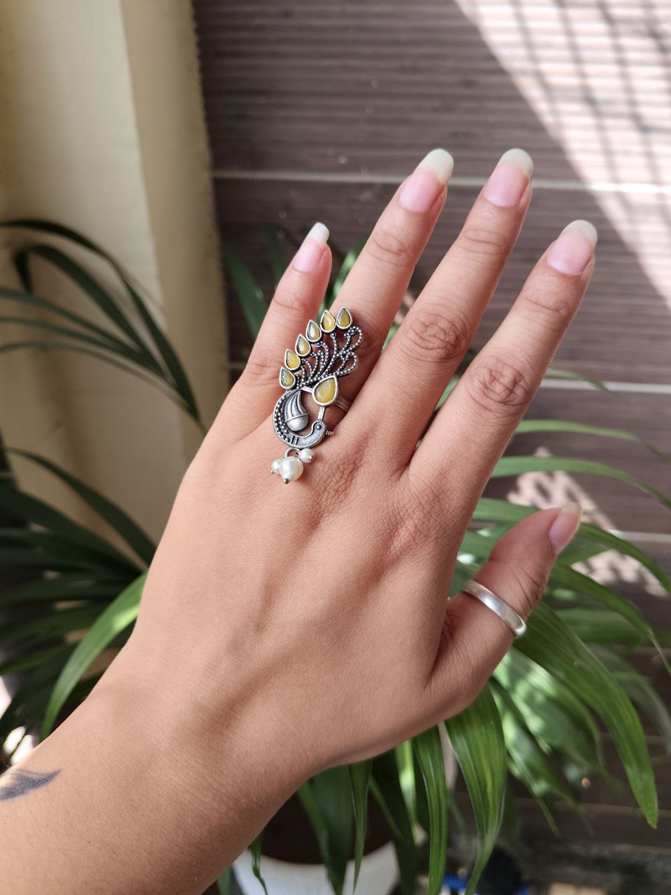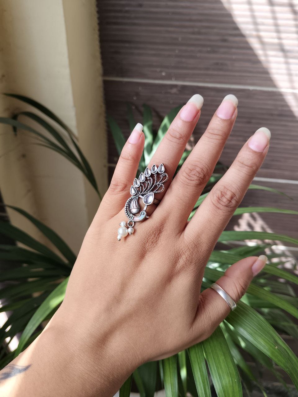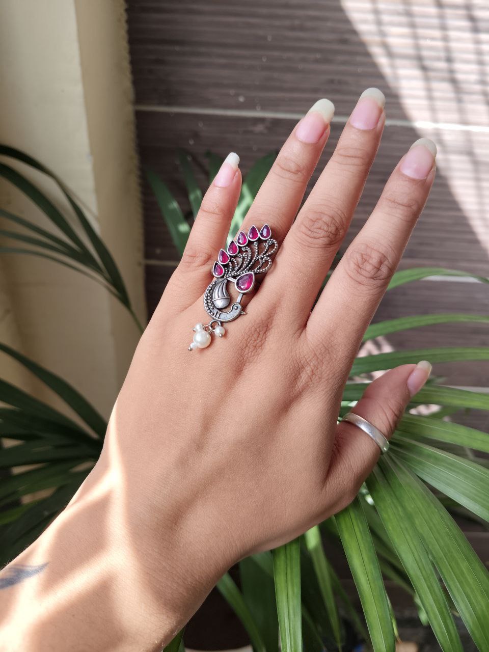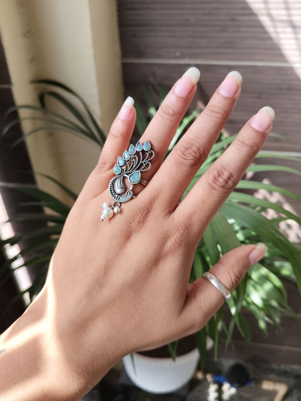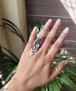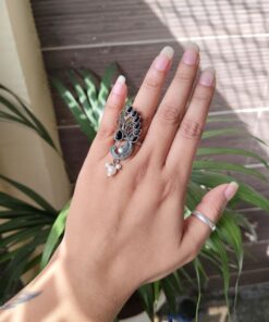 Crafted from high-quality brass and finished with premium oxidized polish, the ring offers durability along with a stunning vintage silver appearance. The oxidized texture enhances the detailed peacock design, highlighting every feather pattern and artistic curve. This artistic finish gives the ring a timeless look, making it suitable for pairing with ethnic outfits, Indo-western styles, and modern fashion ensembles.