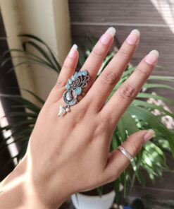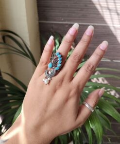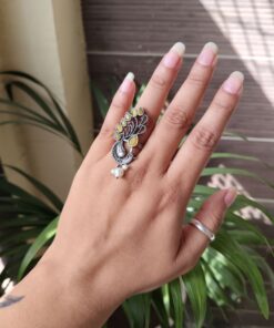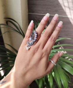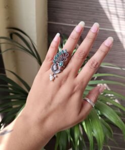 The Oxidized Peacock Ring is lightweight and comfortable, allowing you to wear it throughout the day without discomfort. Its bold design makes it perfect for women and girls who love unique jewelry pieces that stand out. Whether styled with traditional sarees, kurtis, or casual outfits, this ring adds a beautiful handcrafted charm that elevates the overall look effortlessly.