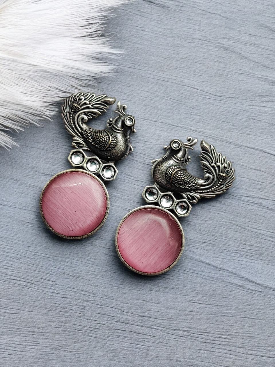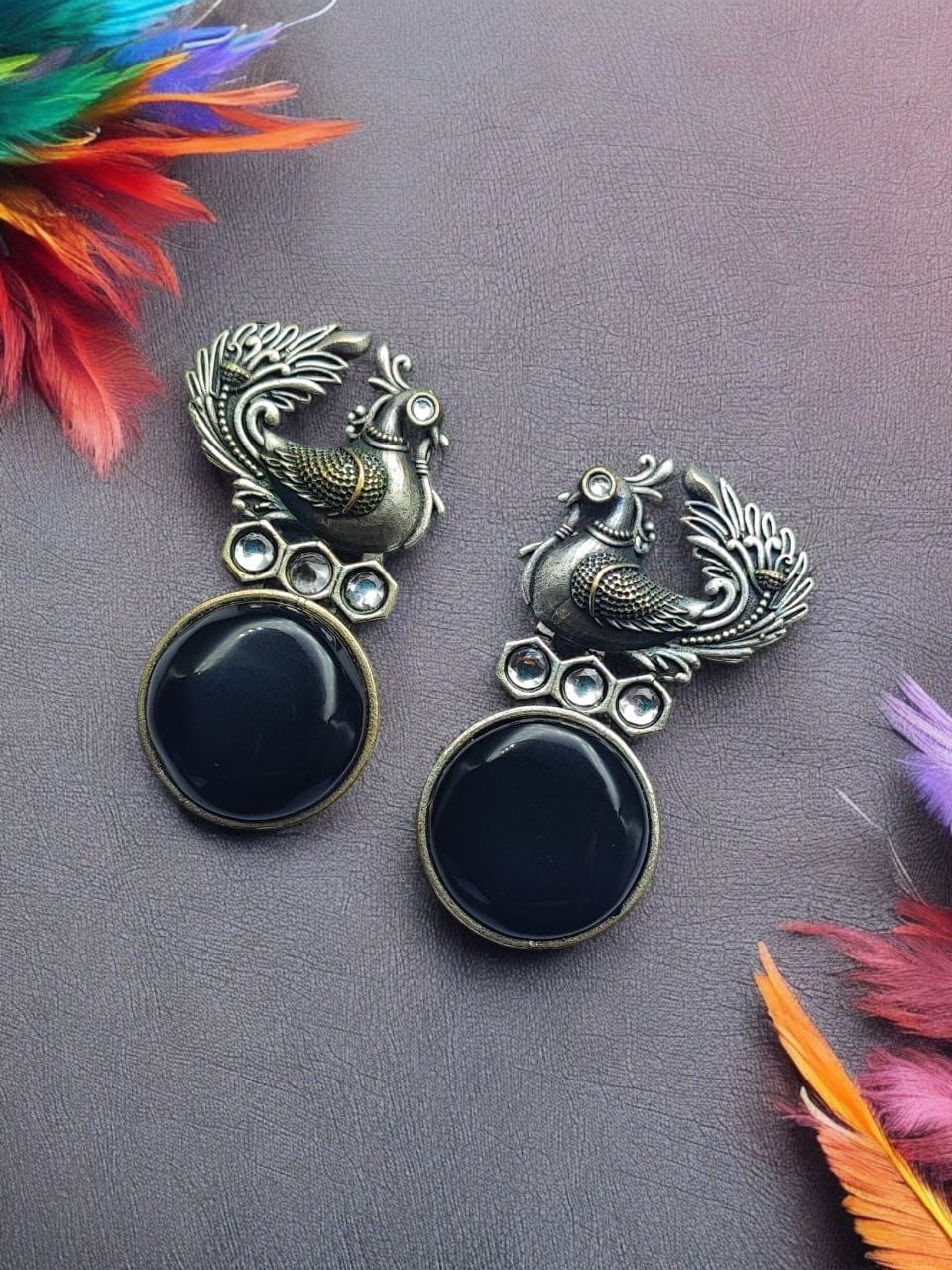 Be the first to review “Oxidized Peacock Style Earrings | Unique Silver Replica Stone Stud Jewelry” Cancel reply