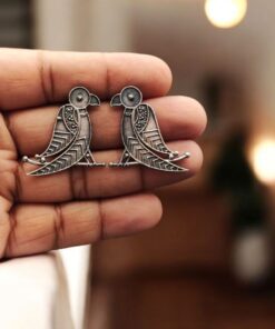 Elevate your ethnic style with these Oxidized Replica Parrot Design Stud Earrings, a perfect blend of tradition and contemporary elegance. Crafted with precision, these earrings feature a beautiful parrot design, symbolizing grace, beauty, and cultural heritage. The oxidized silver finish gives them a vintage appeal, making them an ideal accessory for those who appreciate classic jewelry with a modern touch.