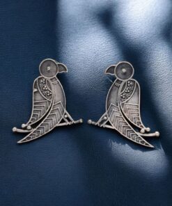 Add a touch of elegance and tradition to your jewelry collection with these Oxidized Replica Parrot Design Stud Earrings and make every outfit shine with timeless charm!