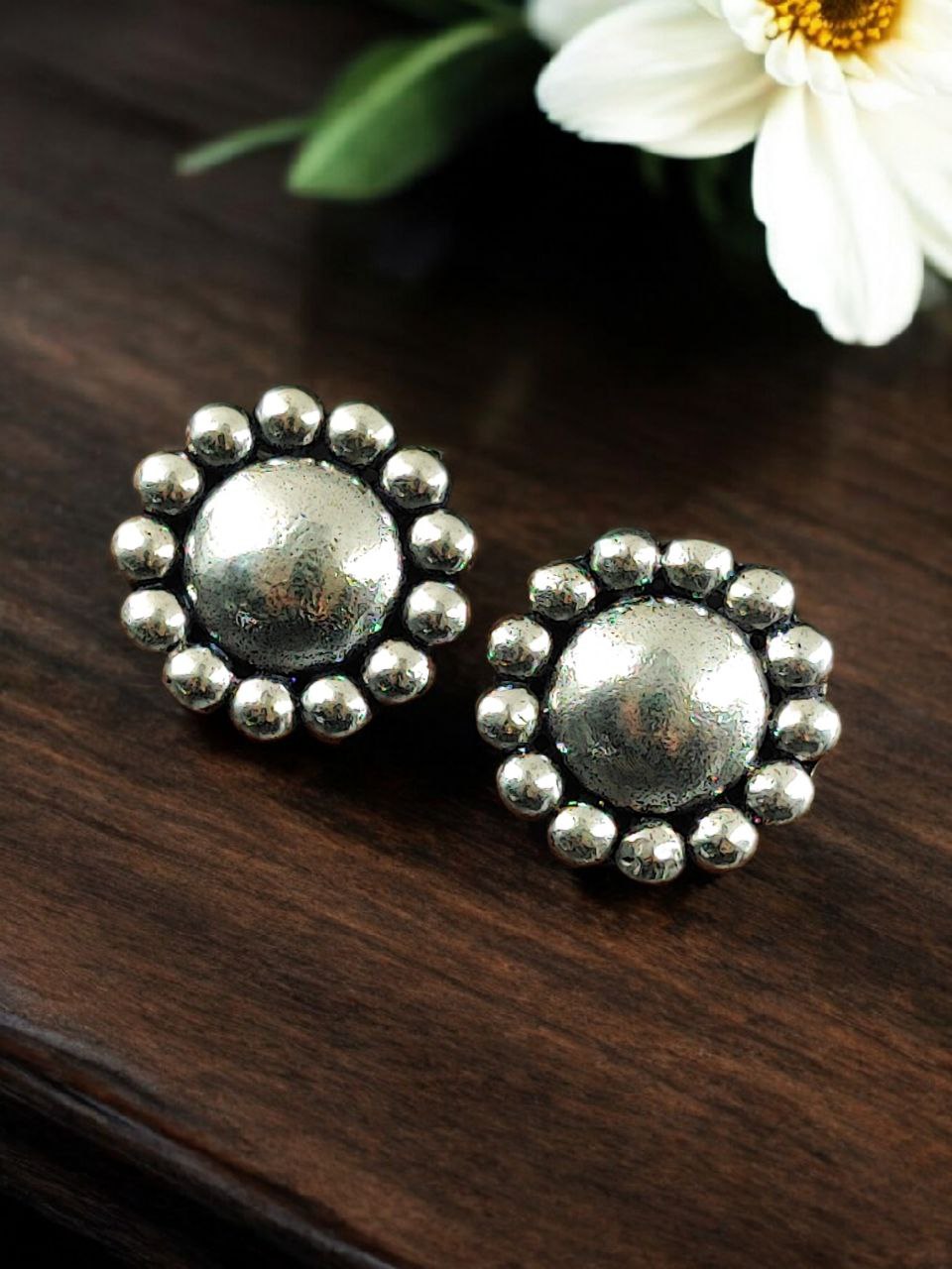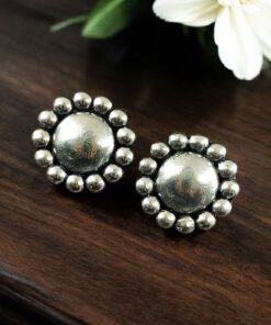 Designed for women who appreciate traditional jewelry with simple elegance, these oxidized silver plated studs are durable and easy to maintain. The premium plating helps retain shine and texture, while the oxidized finish resists quick fading when stored and cared for properly. Their classic floral design makes them a thoughtful gifting option for birthdays, anniversaries, weddings, and festivals such as Diwali, Navratri, and Raksha Bandhan.