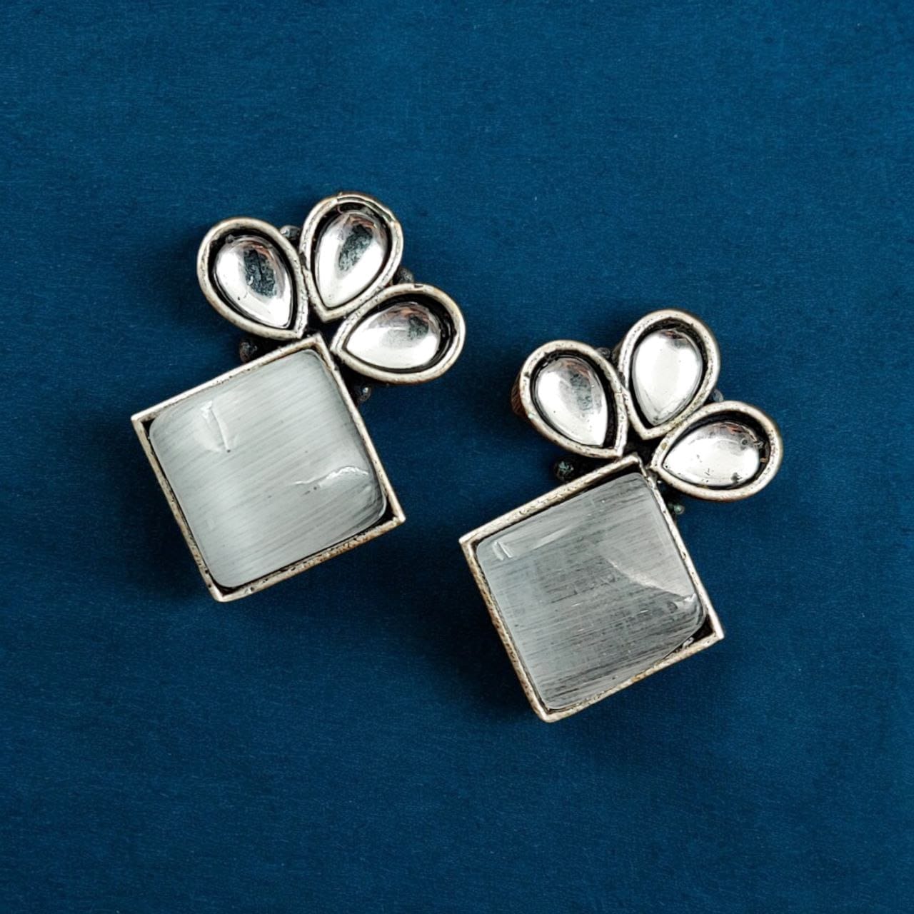 Oxidized Silver Replica Earrings For Everyday Use | Stone Studs Jewelry