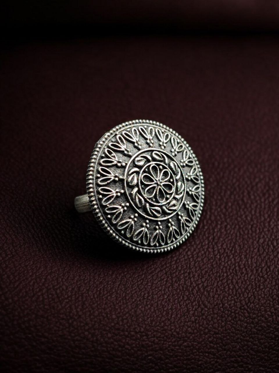 Oxidized Silver Replica Flower Design Ring | Adjustable Daily Wear Beautiful Jewelry