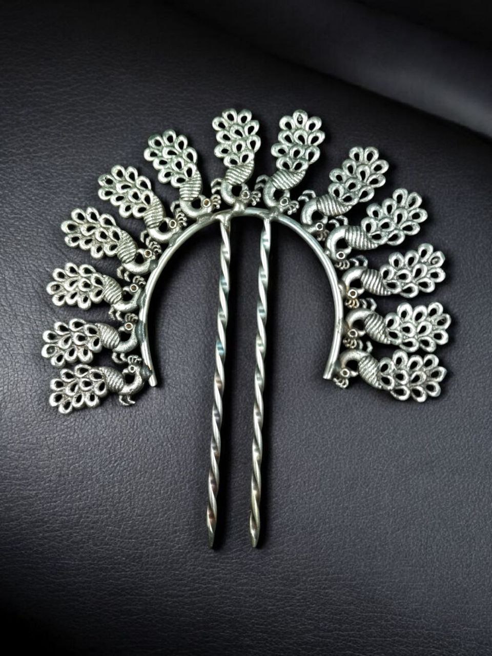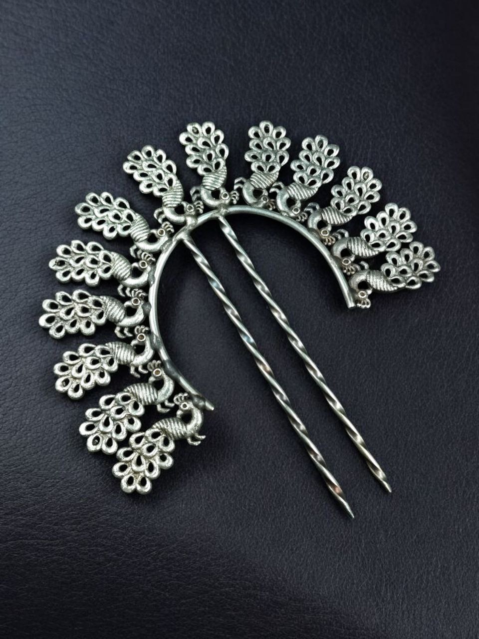 Handcrafted with care and designed with cultural inspiration, this Oxidized Silver Replica Peacock Juda Pin is a must-have for women who adore unique ethnic accessories. Let your bun shine with tradition, beauty, and elegance ? every time you wear it.
