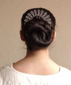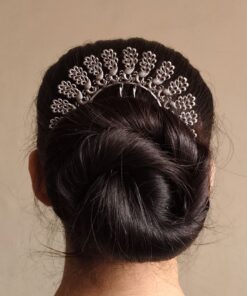 Coated with a premium oxidized silver replica finish, the juda pin has a timeless, antique-inspired look that pairs beautifully with all hair colors. The oxidized treatment adds depth, enhancing the detailing and giving it a rich, handcrafted appeal. This elegant design makes it the perfect finishing touch to buns, bridal hairstyles, and festive updos.