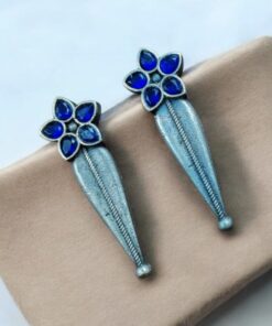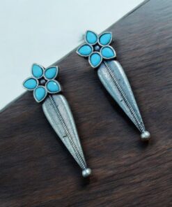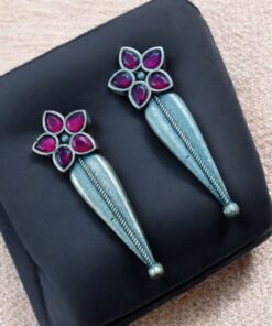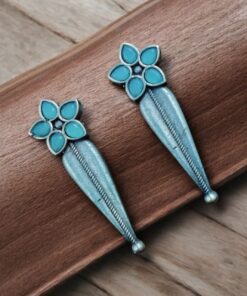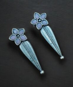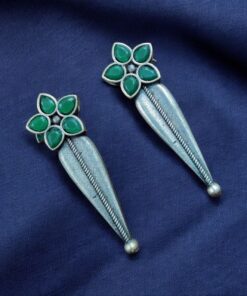 These earrings are not only a stylish accessory but also a symbol of nature?s charm and grace. The oxidized silver finish complements a variety of skin tones and can be paired effortlessly with other jewelry pieces. The adorable stone work adds a pop of color, making these earrings perfect for any occasion.