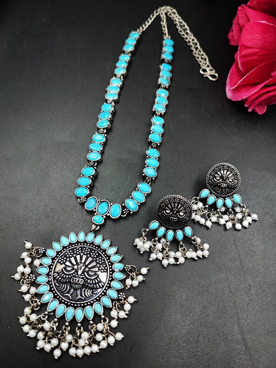 Peacock Design Silver Replica Necklace Set for Women Traditional Ethnic Partywear Jewelry