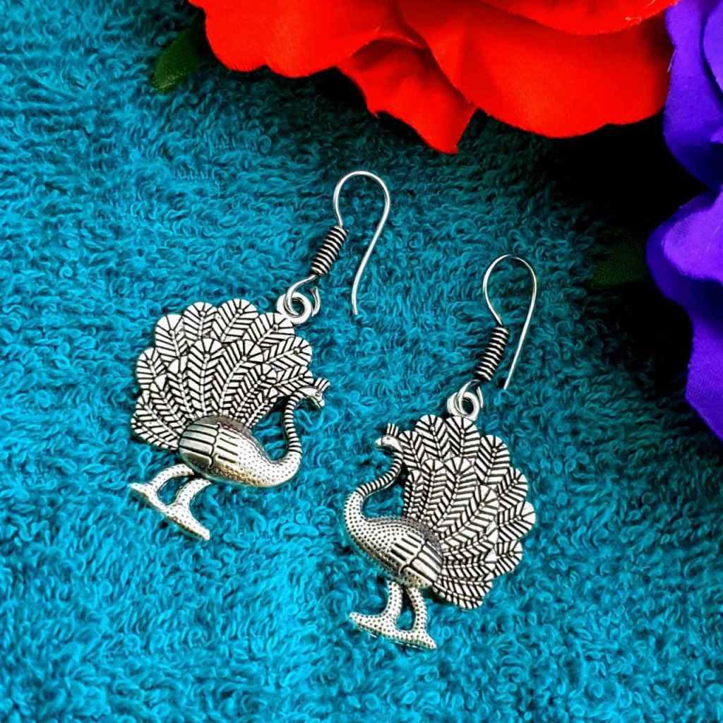 Peacock Hook Earrings in German Silver