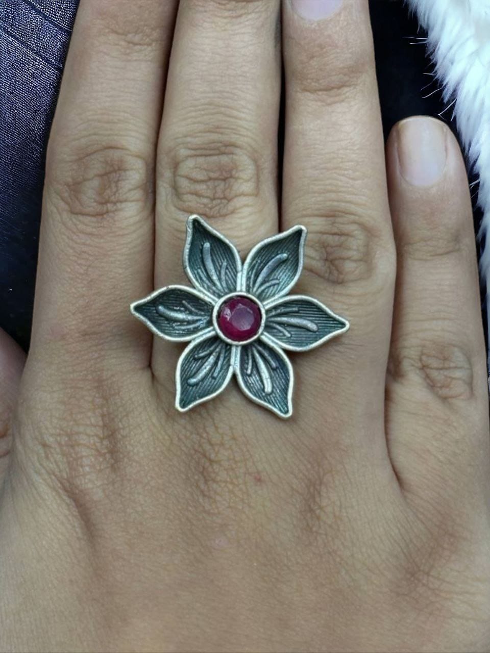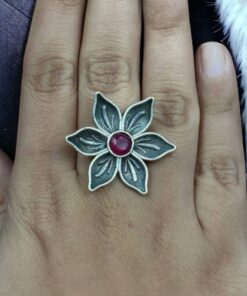 At the center of this exquisite ring lies a sparkling stone that adds a touch of sophistication and brilliance. The intricate detailing of the flower pattern complements the shimmering stone, creating a harmonious balance between nature-inspired beauty and contemporary aesthetics. Whether you’re dressing up for a special occasion or adding a refined touch to your everyday outfit, this Flower Ring is the ideal choice.