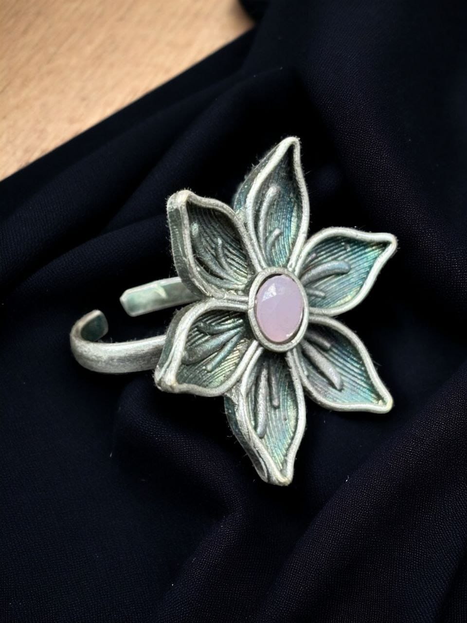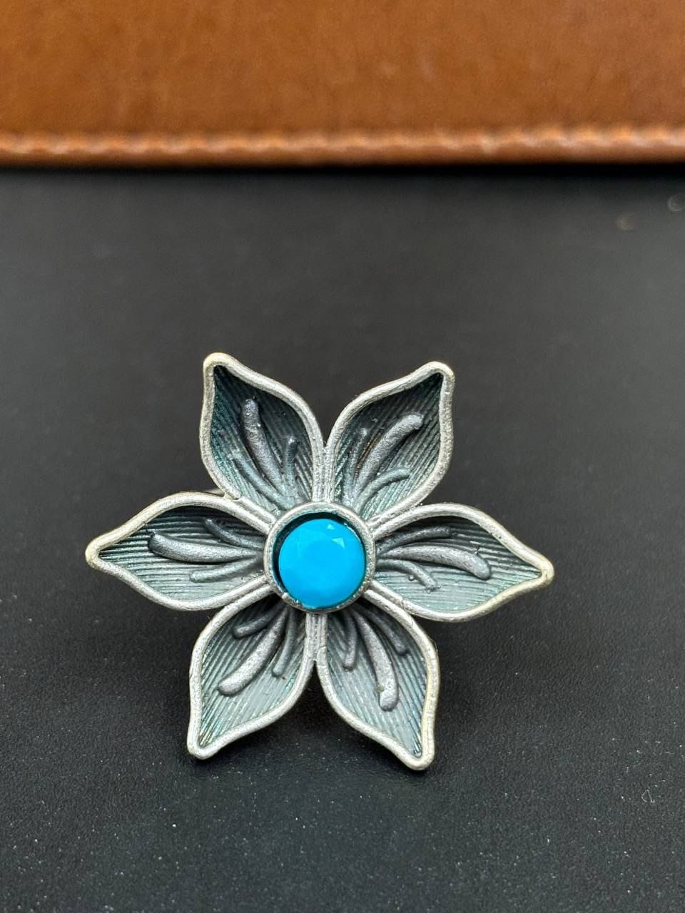 Pair this Flower Ring with matching brass jewelry or let it stand alone as a statement piece?it?s sure to turn heads and garner compliments. Its lightweight design ensures all-day comfort, while the adjustable band offers a secure and snug fit.