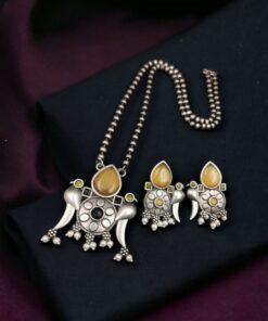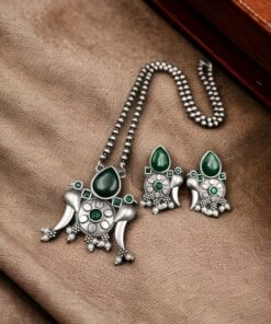 Elevate your ethnic jewelry collection with the Perfect Brass Necklace with Monalisa Stone and Bird Design, Ethnic Set with Matching Earrings. This stunning jewelry set is a harmonious blend of artistry, elegance, and tradition, making it a must-have accessory for every occasion.
