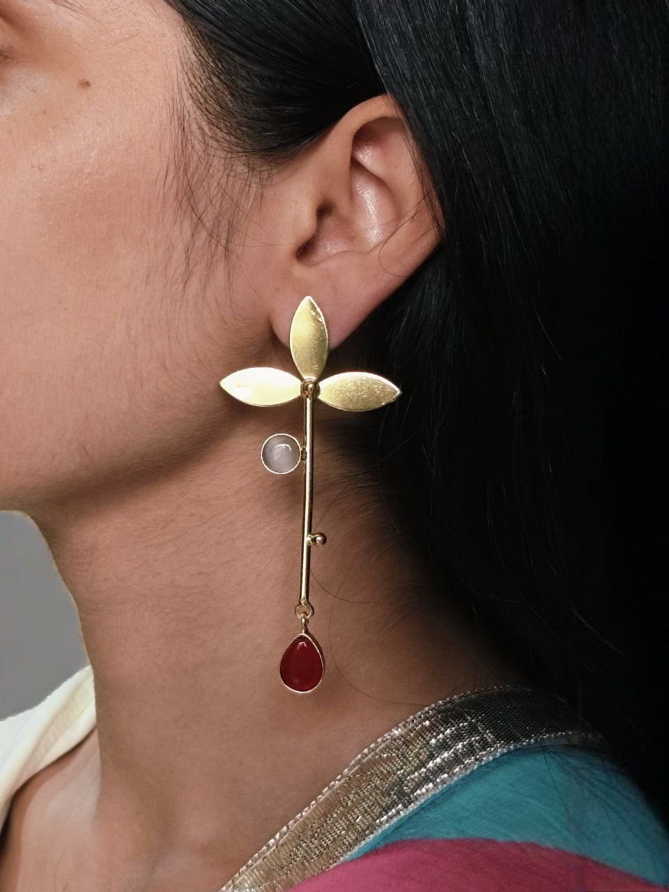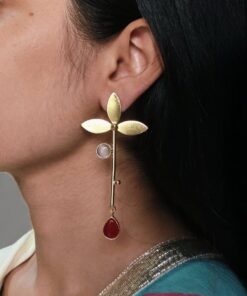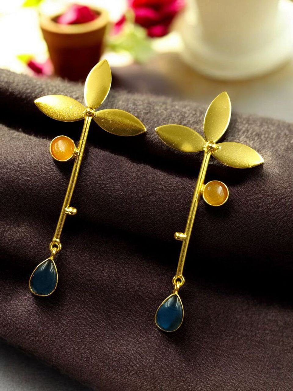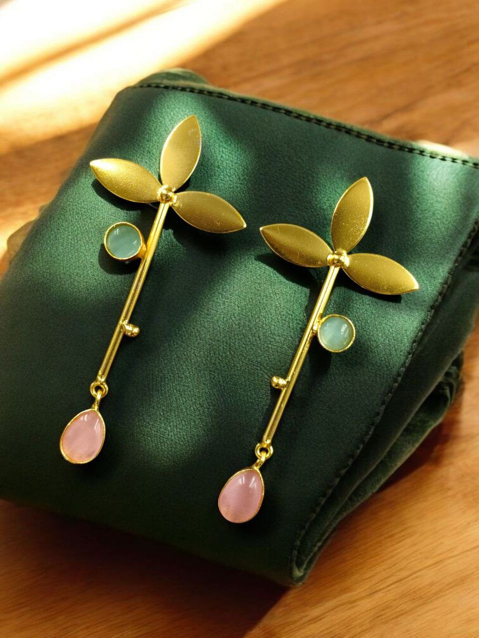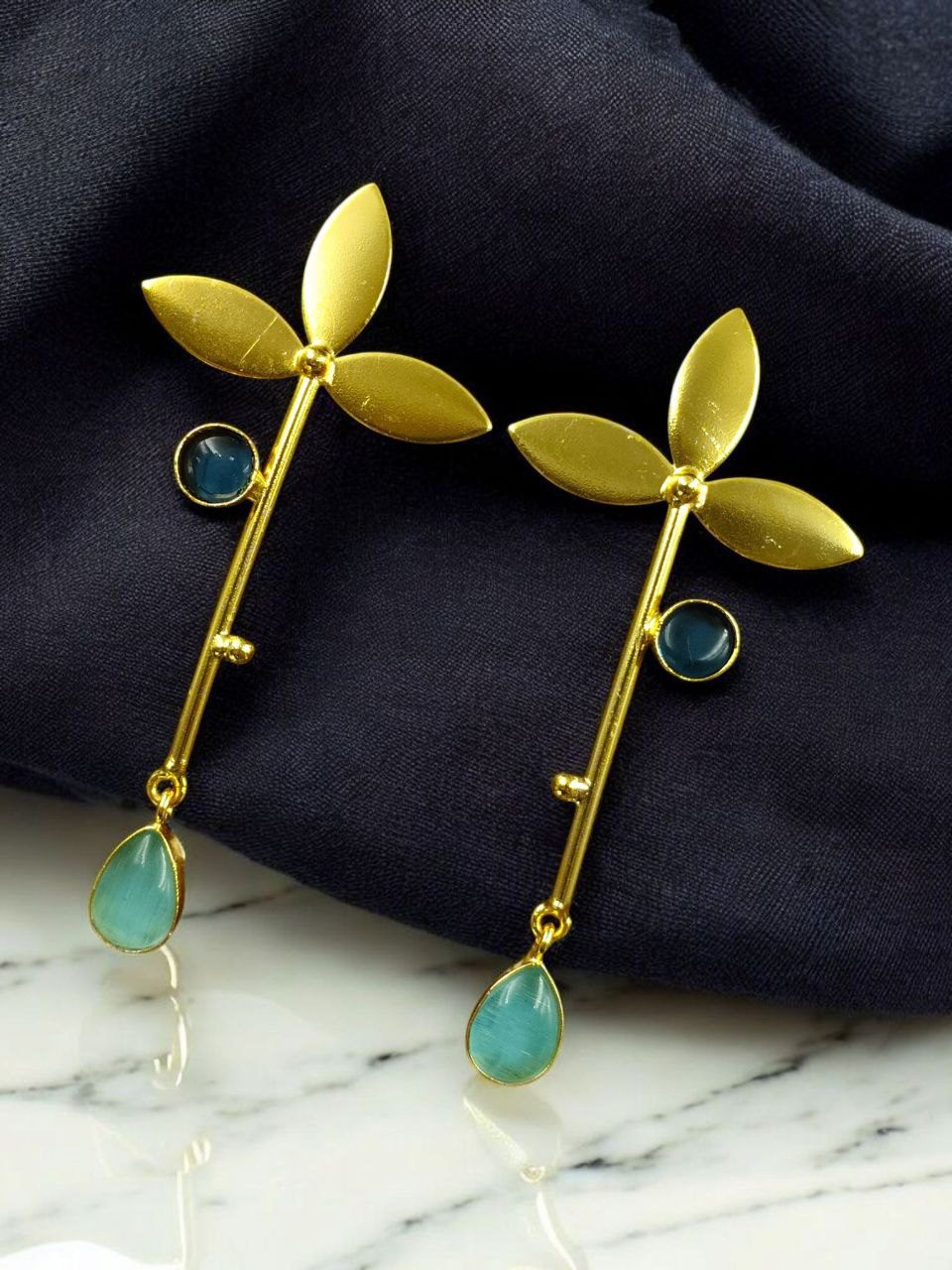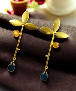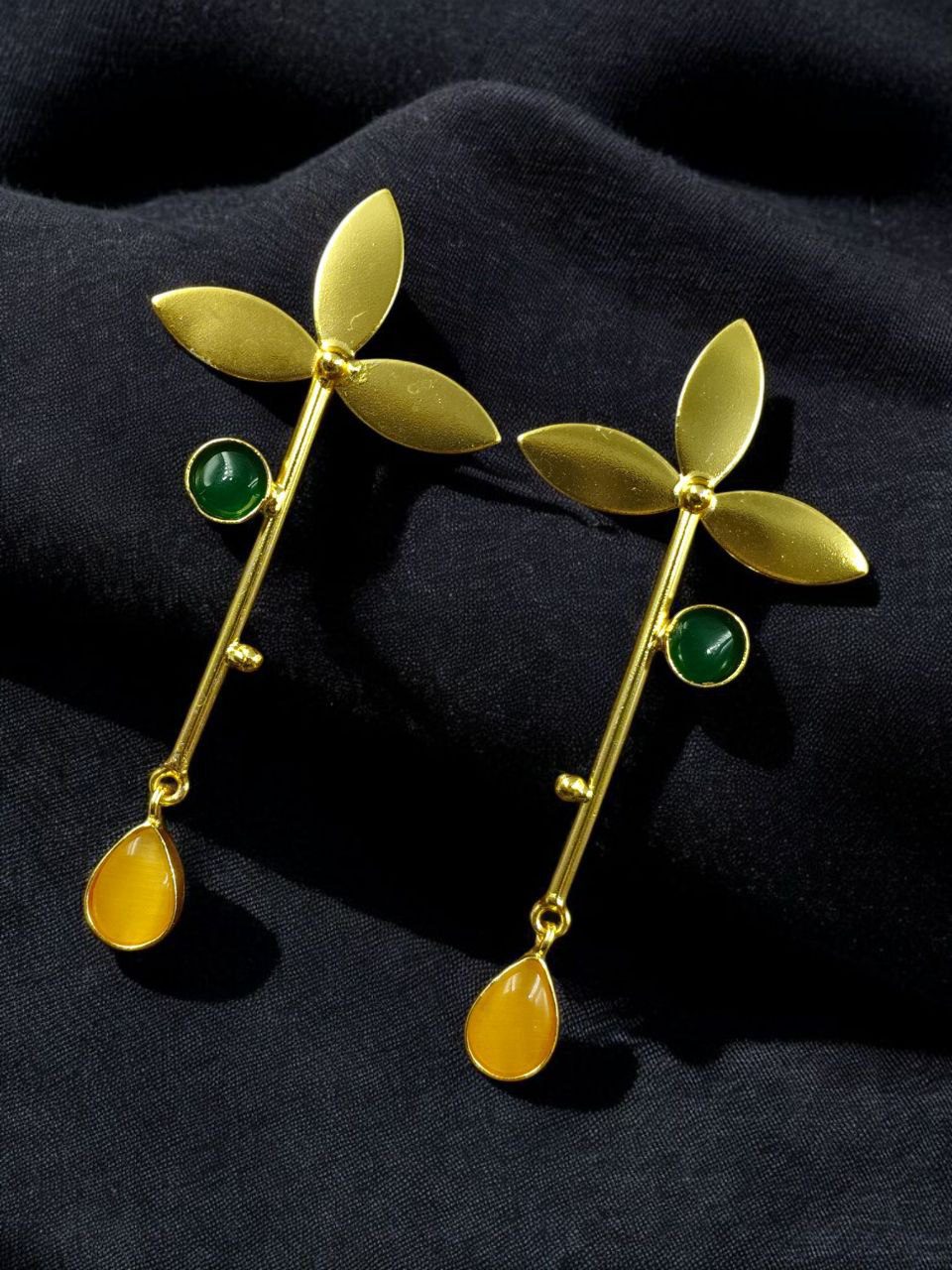 In summary, the Premium Gold-Plated Brass Earrings with Monalisa Stone offer the perfect blend of modern design, luxurious materials, and everyday wearability. Their long stud style creates a striking silhouette, while the gold-plated brass and radiant Monalisa stone ensure a quality finish that won?t go unnoticed.