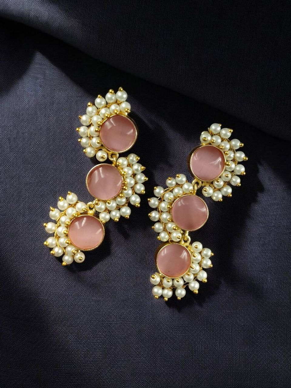 The centerpiece of these earrings is the exquisite Monalisa stone, known for its soft luster, dreamy color tones, and polished finish. Set with precision, the Monalisa stone catches light beautifully, giving off an ethereal shimmer that adds subtle glamor without being overpowering. Whether you’re attending a festive celebration, a formal gathering, or a casual outing, these earrings adapt seamlessly to every occasion.