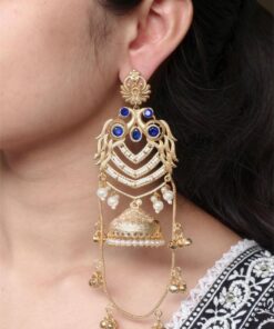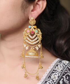 Elevate your traditional look with these Premium Peacock Design Kashmiri Jhumka Earrings, exquisitely crafted in a rich gold plated finish. Inspired by the elegance of Kashmiri craftsmanship and the timeless beauty of the peacock motif, these Kashmiri Jhumka Earrings are designed for women who love grand, graceful, and heritage-inspired jewelry.
