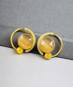 Premium Round Monalisa Stone Earrings | Best Western Contemporary Jewelry