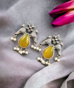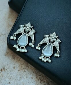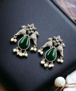 At the heart of these Premium Stone Jewelry lies a delicate bird-inspired design, symbolizing freedom, grace, and beauty. Each stud is meticulously crafted with intricate detailing, capturing the essence of nature’s elegance. The oxidized silver finish adds a touch of vintage allure, lending these earrings a timeless appeal that transcends trends.