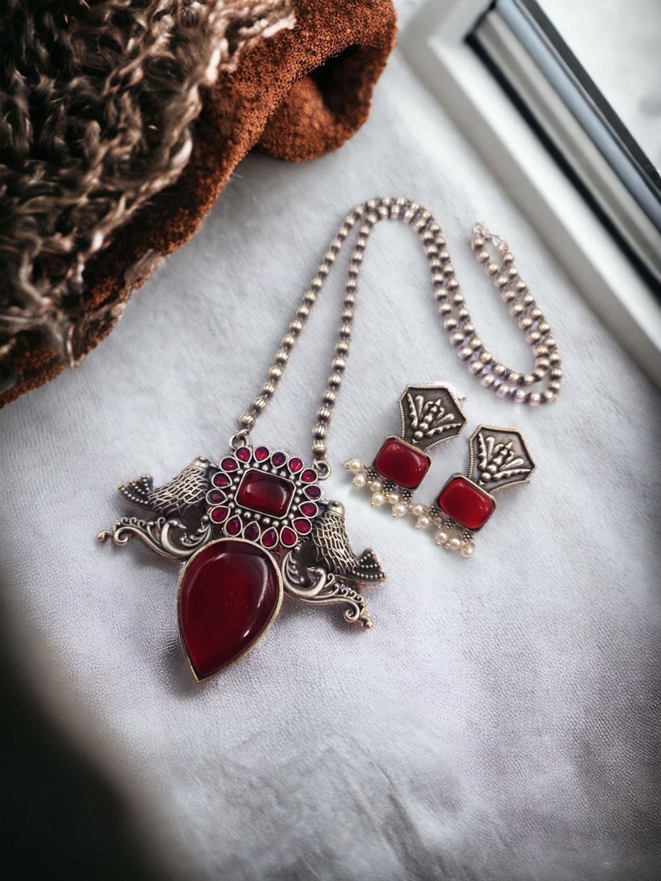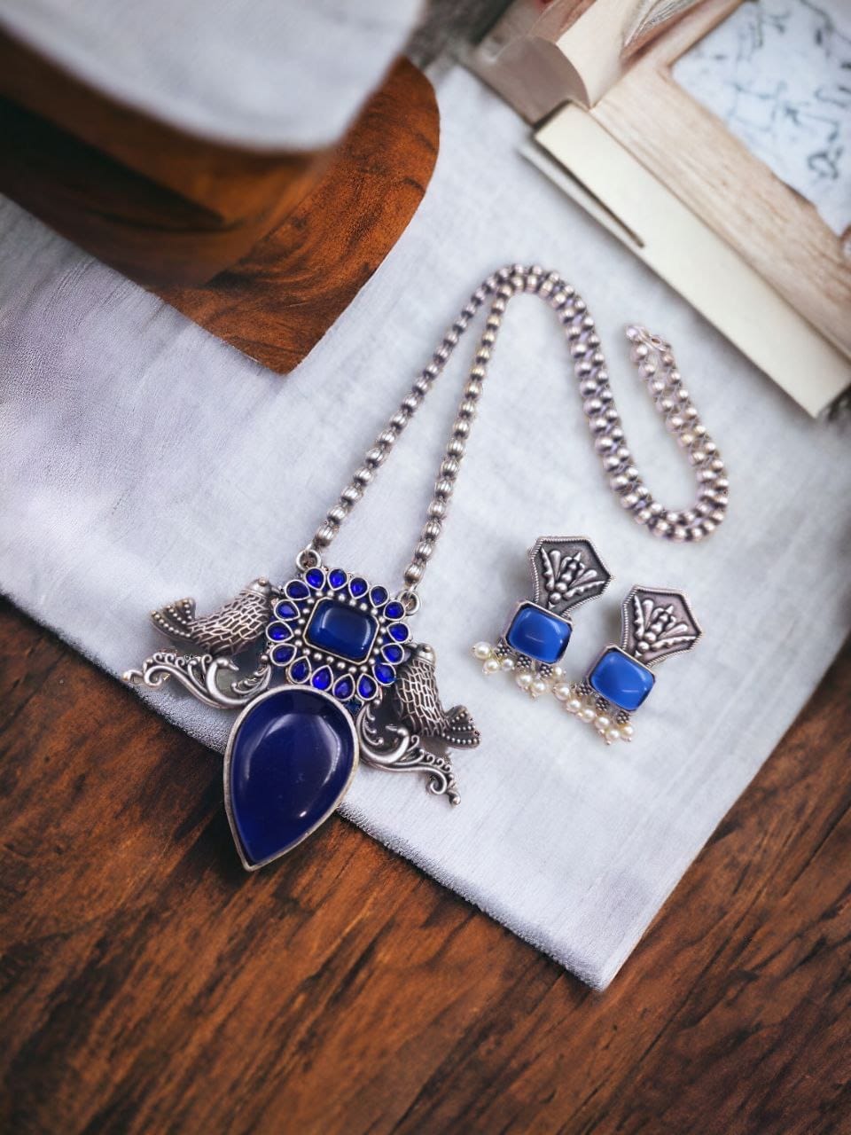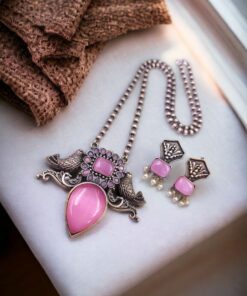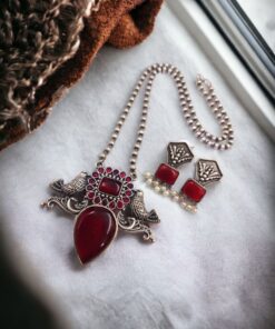 Be the first to review “Silver Antique Look Bird Necklace Set with Attractive Stone Work For Girls” Cancel reply