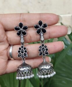 These earrings are versatile and can be styled effortlessly with sarees, lehengas, kurtis, or even fusion outfits. The elegant floral design makes them a standout accessory that complements different styles and occasions. Whether you are attending a wedding, festive celebration, or party, these jhumkas bring a sophisticated and graceful touch to your appearance.