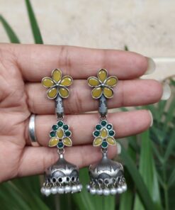 The Floral Art Jhumka also makes for a thoughtful gift for your loved ones. Its unique design, premium finish, and timeless appeal make it a perfect choice for birthdays, anniversaries, or festive gifting. Add this beautiful pair to your jewelry collection and experience the charm of traditional artistry with a modern twist.