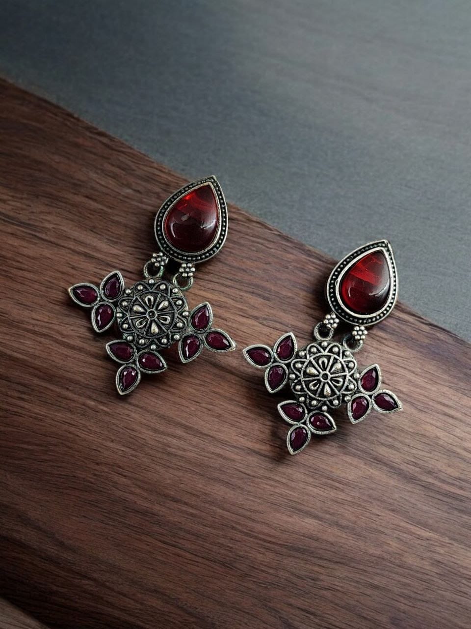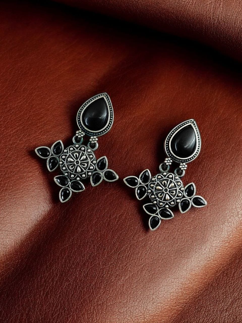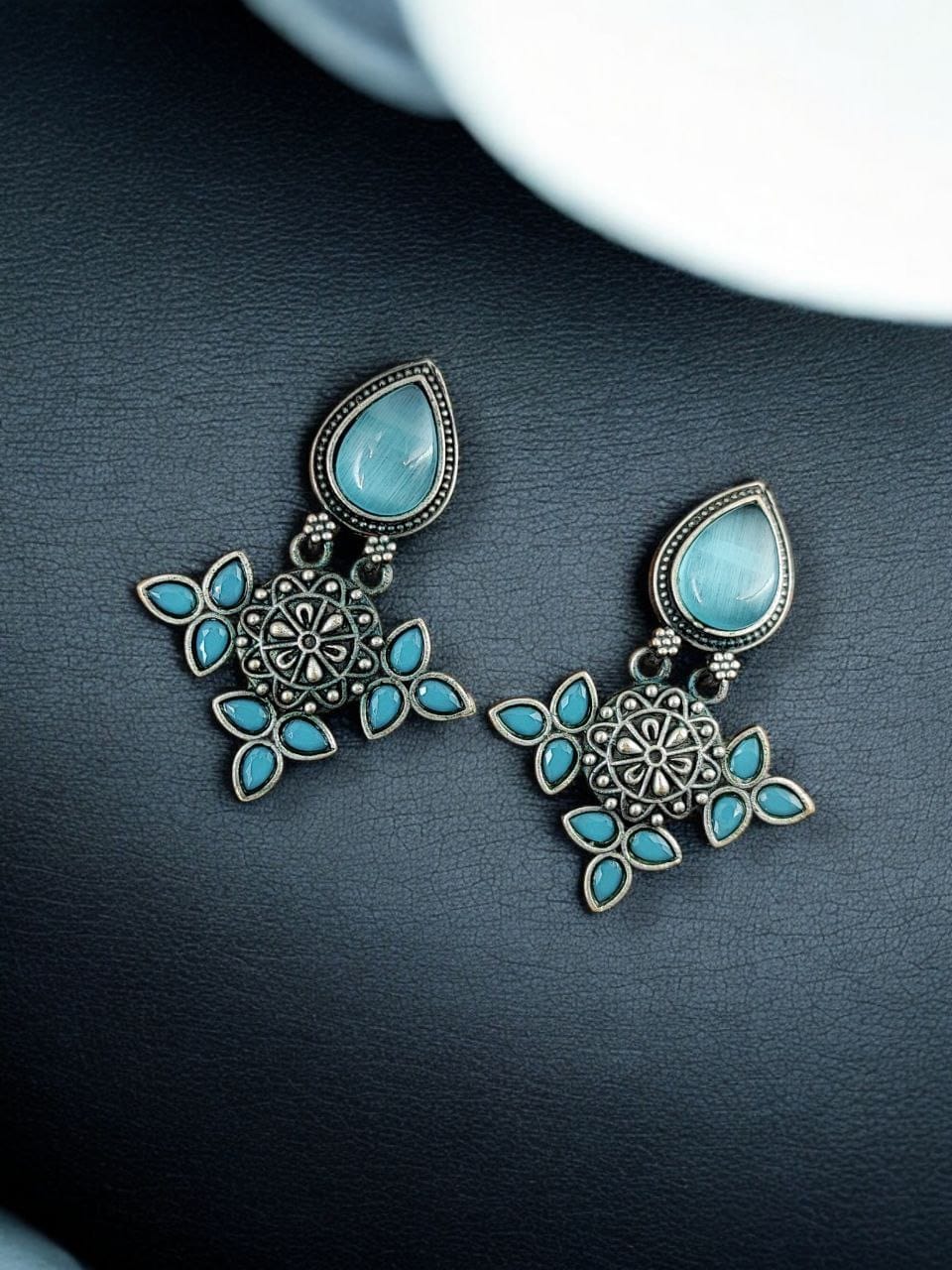 Add a touch of sophistication to your outfit with our Silver Look-Alike Earrings featuring exquisite Monalisa stone work. Shop now and make a statement wherever you go.