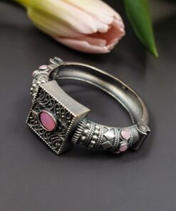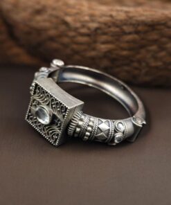 Silver Look Bangle | Free Size Openable Kada | Oxidized Bracelet