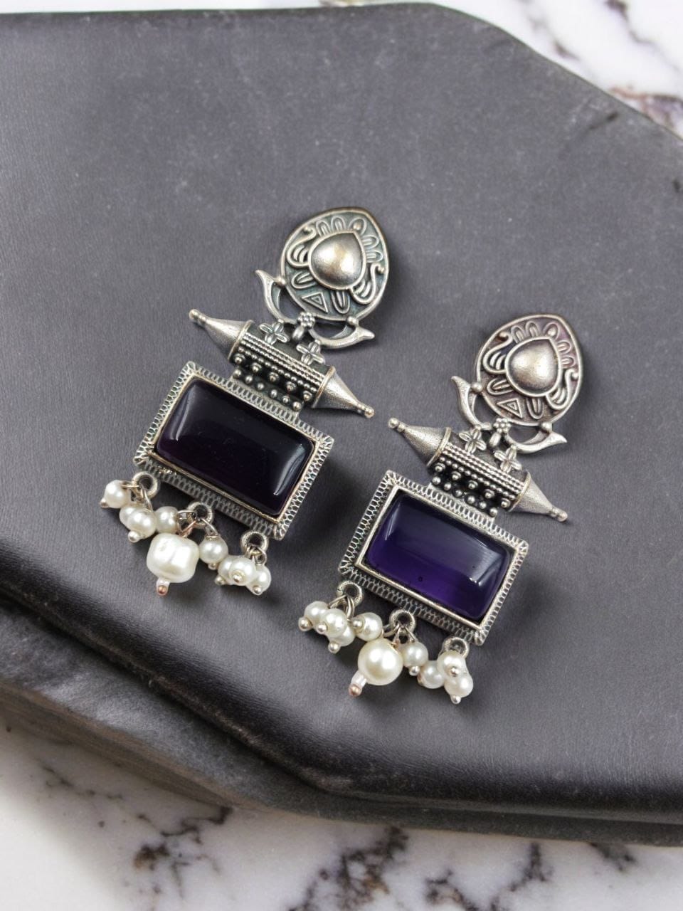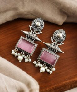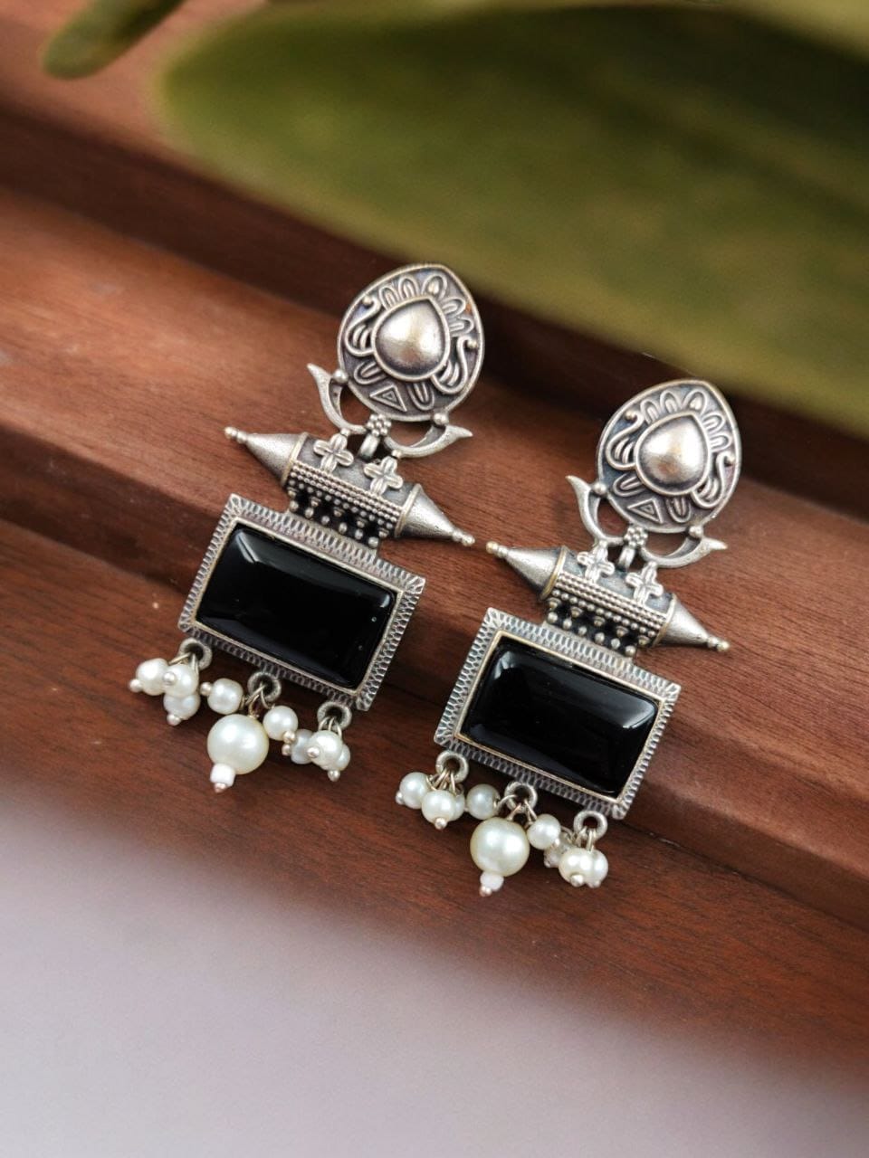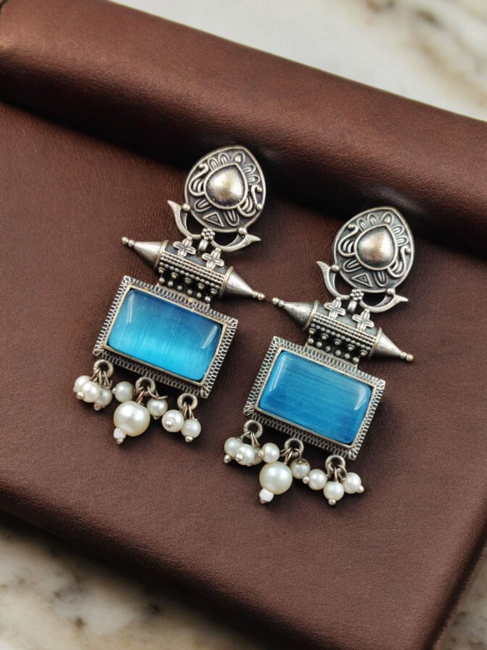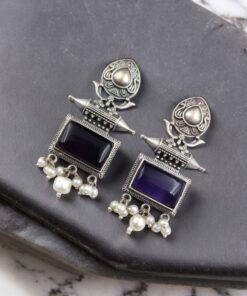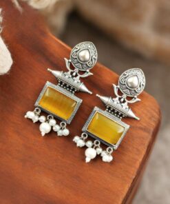 Our Silver Look Earrings feature an oxidized antique finish that lends them a vintage-inspired charm. Each earring is adorned with antique stone accents, carefully chosen for their unique colors and textures. The combination of oxidized silver and antique stones creates a captivating contrast that adds depth and sophistication to your ensemble.