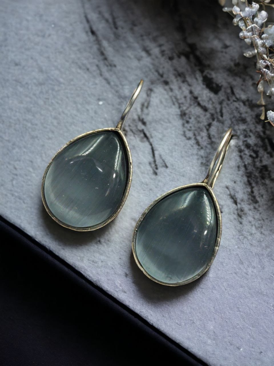 Silver Look Like Stone Earrings – Best Quality Stone Hook Earring