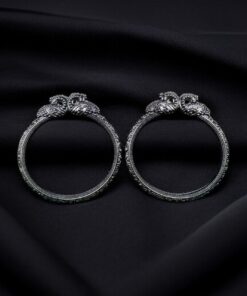 Elevate your everyday elegance or festive glamour with this Silver Look Peacock Design Kada?a piece that blends cultural richness with modern flair.