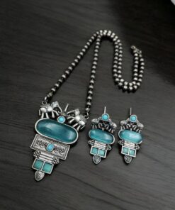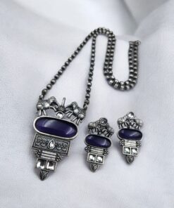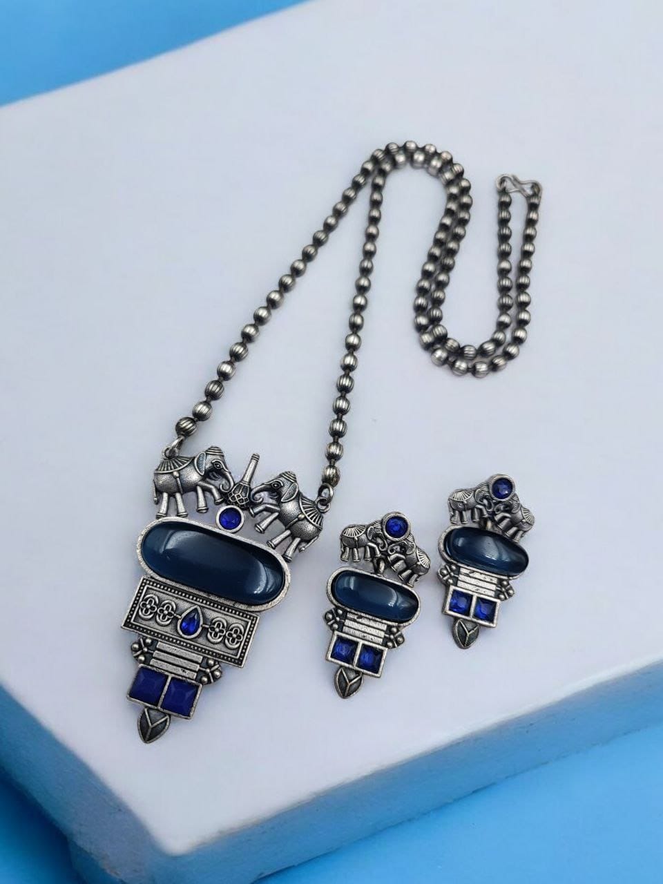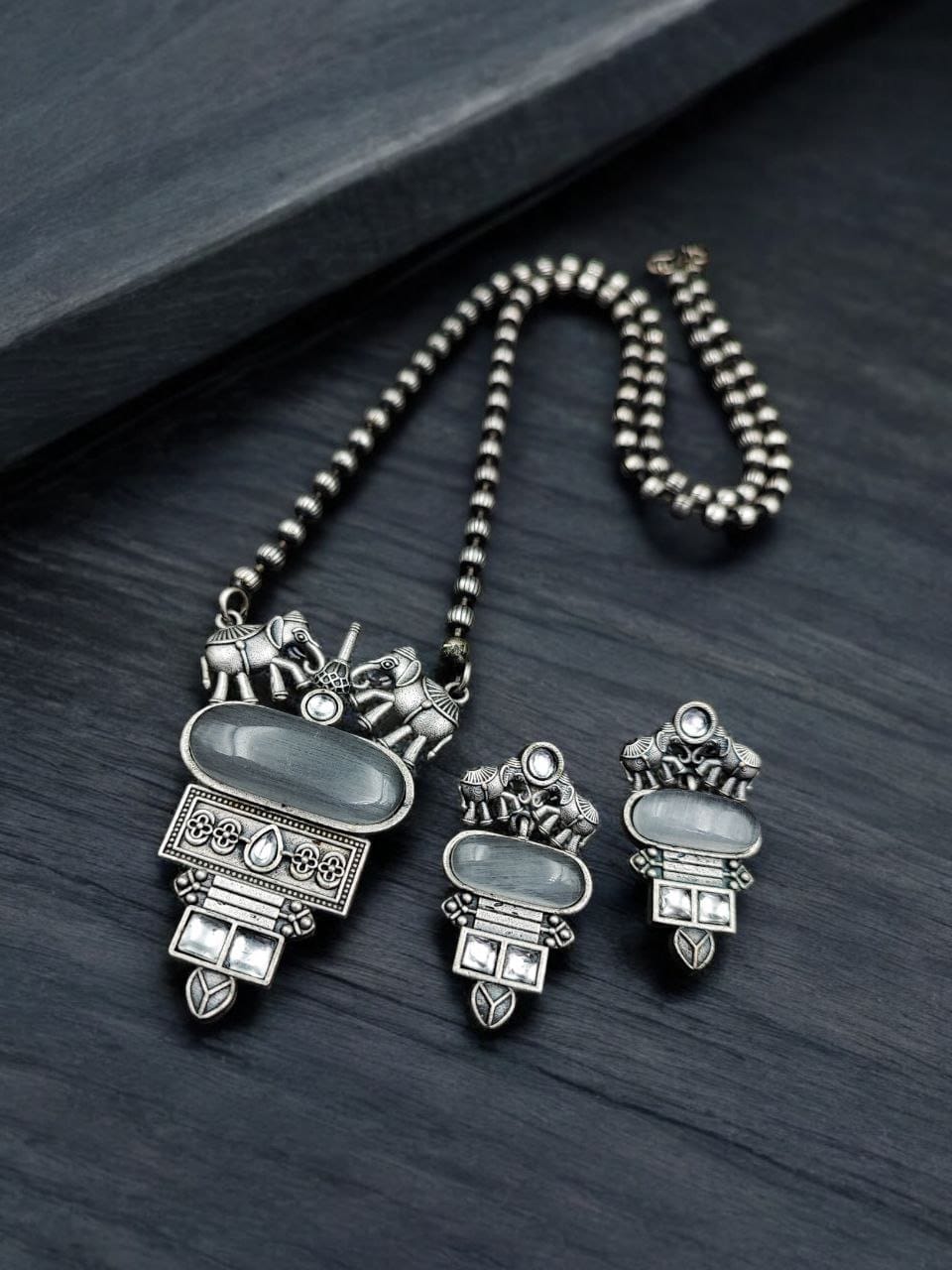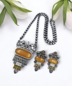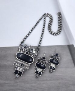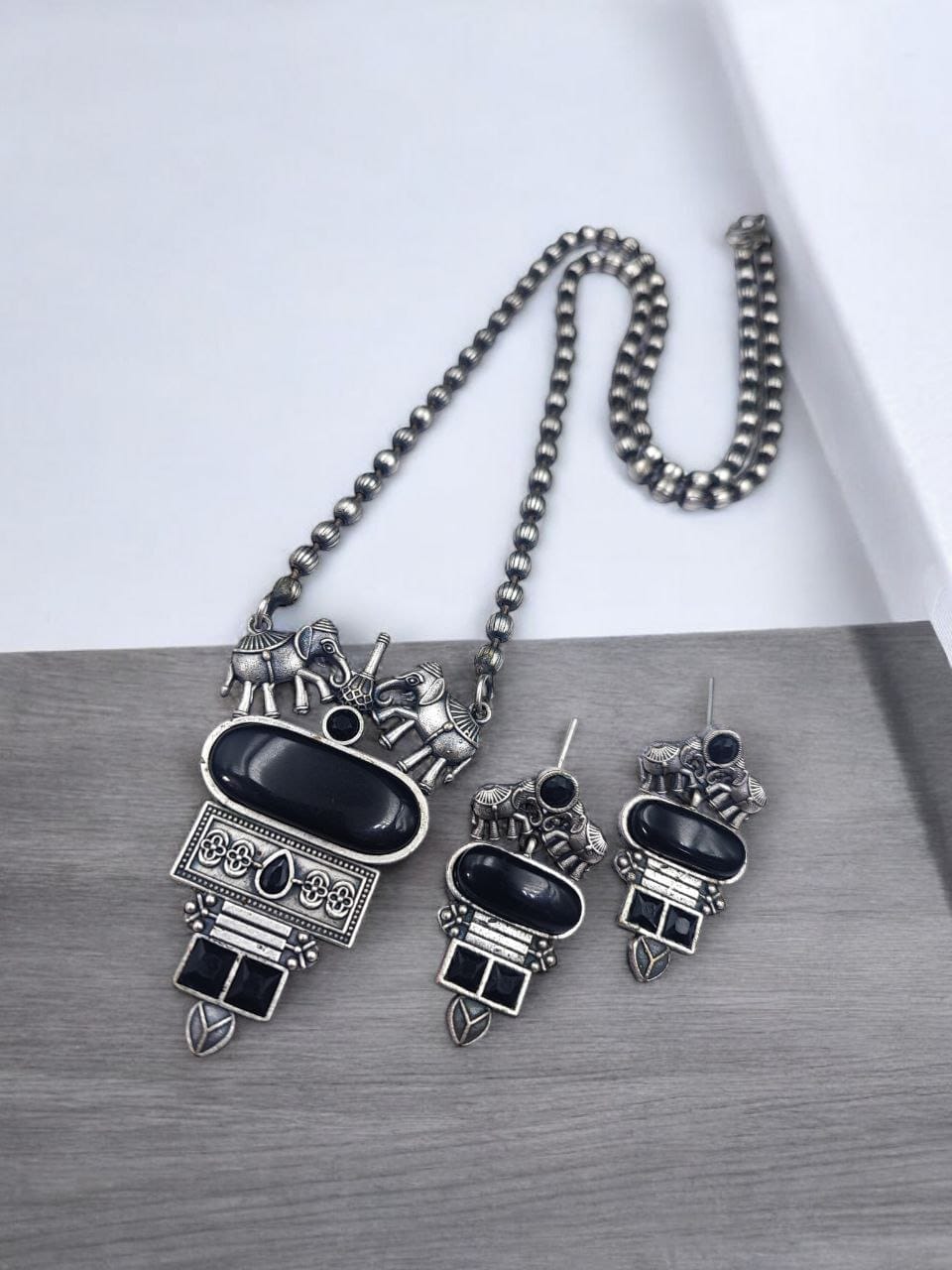 This necklace set is made from high-quality metal alloy, ensuring durability and a long-lasting finish. The oxidized silver look replicates the appearance of real silver, providing a luxurious feel without the high cost. Each piece is carefully handcrafted by skilled artisans, ensuring that every detail is perfect. The sturdy construction ensures that the necklace and earrings maintain their shape and beauty over time, making them a reliable addition to your jewelry collection.
