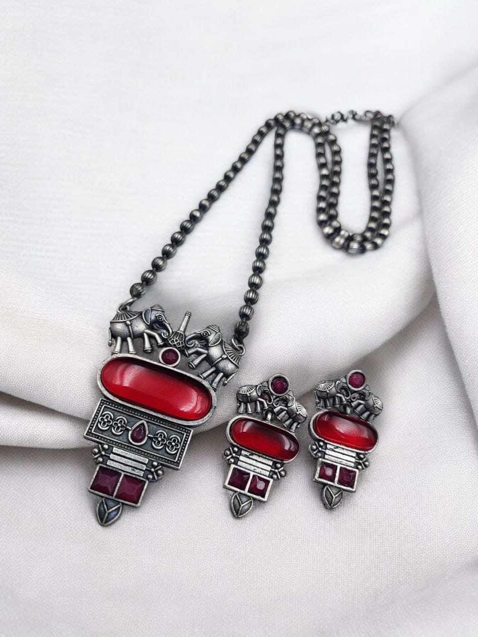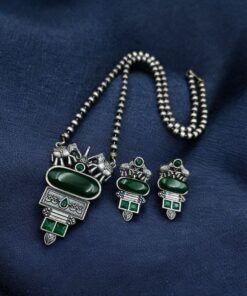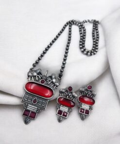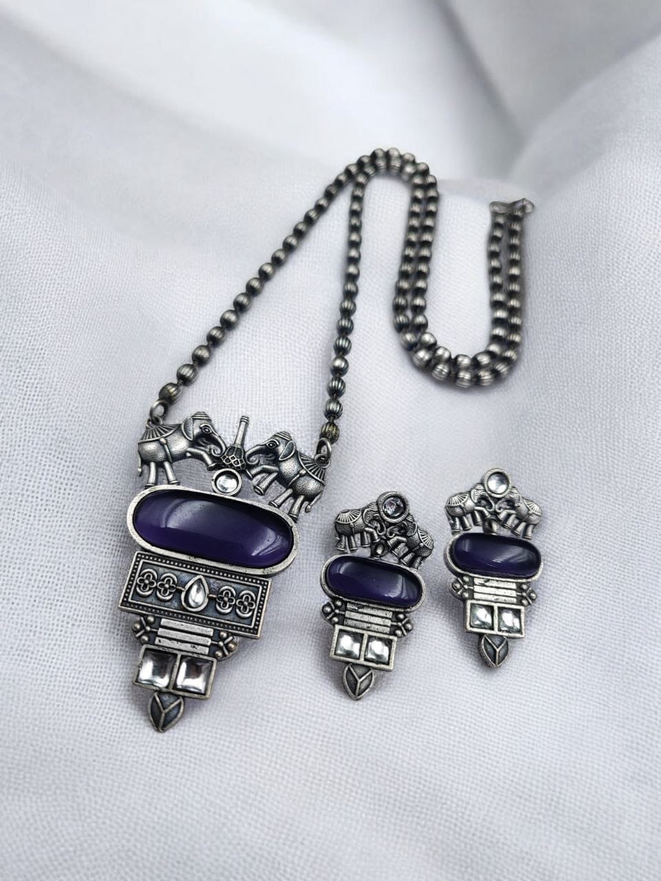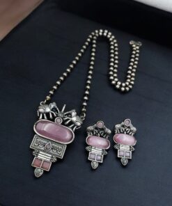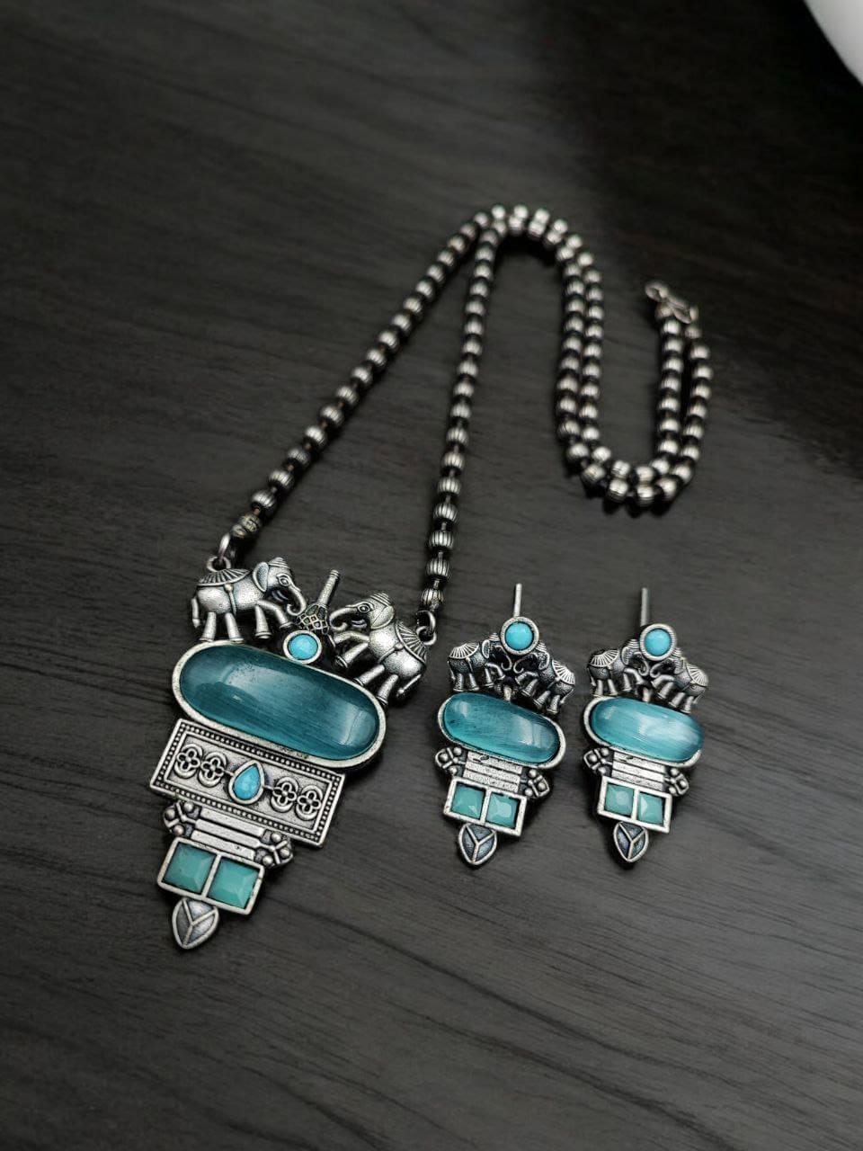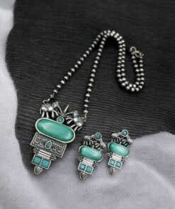 This necklace set is made from high-quality metal alloy, ensuring durability and a long-lasting finish. The oxidized silver look replicates the appearance of real silver, providing a luxurious feel without the high cost. Each piece is carefully handcrafted by skilled artisans, ensuring that every detail is perfect. The sturdy construction ensures that the necklace and earrings maintain their shape and beauty over time, making them a reliable addition to your jewelry collection.