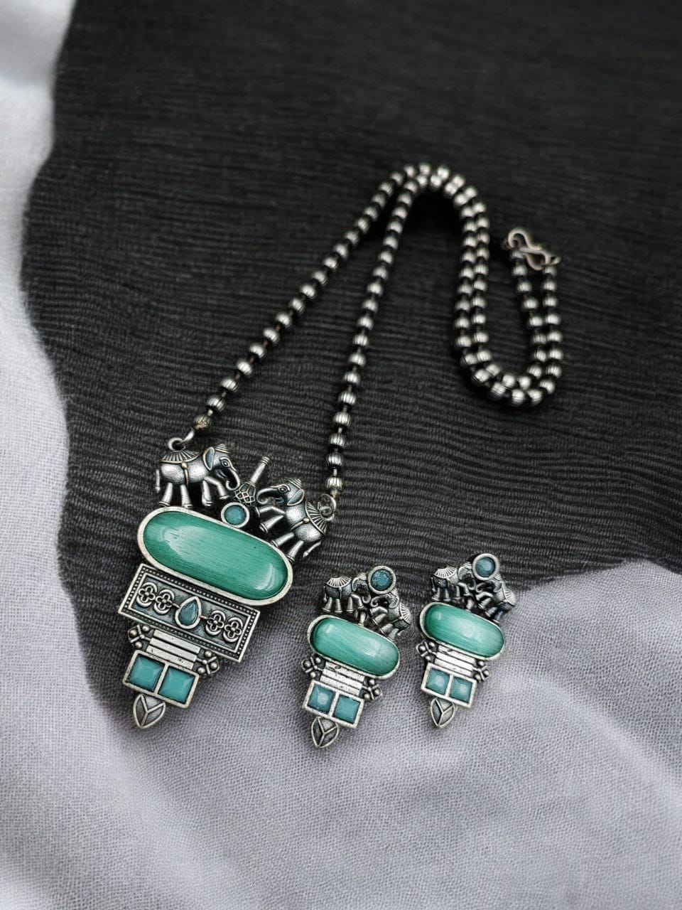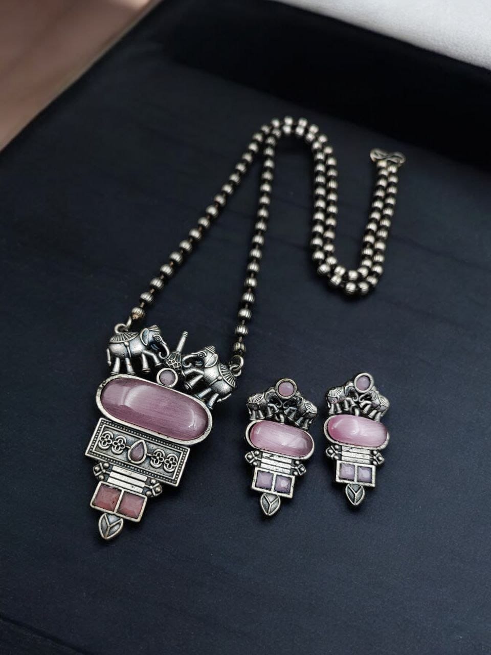 Our oxidized replica jewelry set is versatile enough to be worn with a variety of outfits, from traditional Indian attire like sarees and lehengas to modern dresses and casual ensembles. Its unique design makes it suitable for various occasions, including weddings, festivals, parties, and cultural events. The Silver Look Elephant Design Necklace Set is not only a beautiful accessory but also a symbol of grace and strength, making it a thoughtful gift for loved ones.