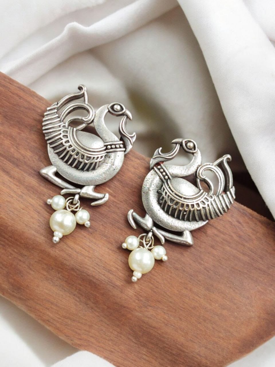 Crafted from high-quality silver look-alike materials, these earrings are designed to offer the beauty and luster of real silver without the high cost. The oxidised finish not only adds to their aesthetic appeal but also provides an extra layer of protection, ensuring that the earrings retain their charm and durability over time.