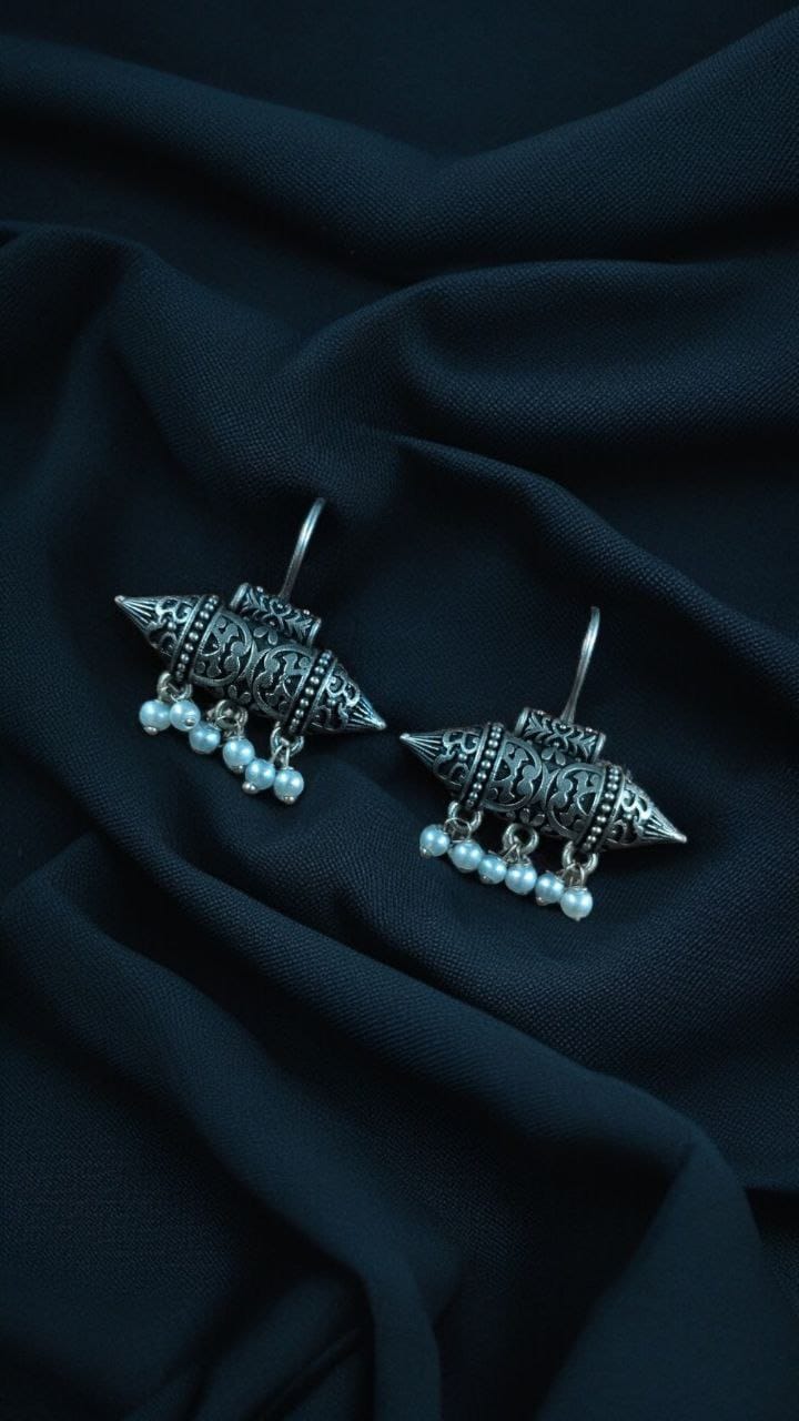 Silver Plated Casual Wear Oxidized Hook Earrings