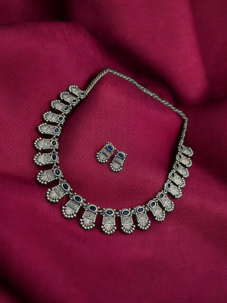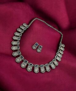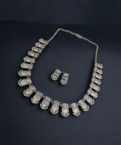 Elevate your style with our exquisite Silver Replica Choker Set, a stunning ensemble designed to make a statement. This designer oxidized necklace, paired with matching earrings, is a perfect blend of traditional charm and contemporary elegance, making it an ideal accessory for any occasion.