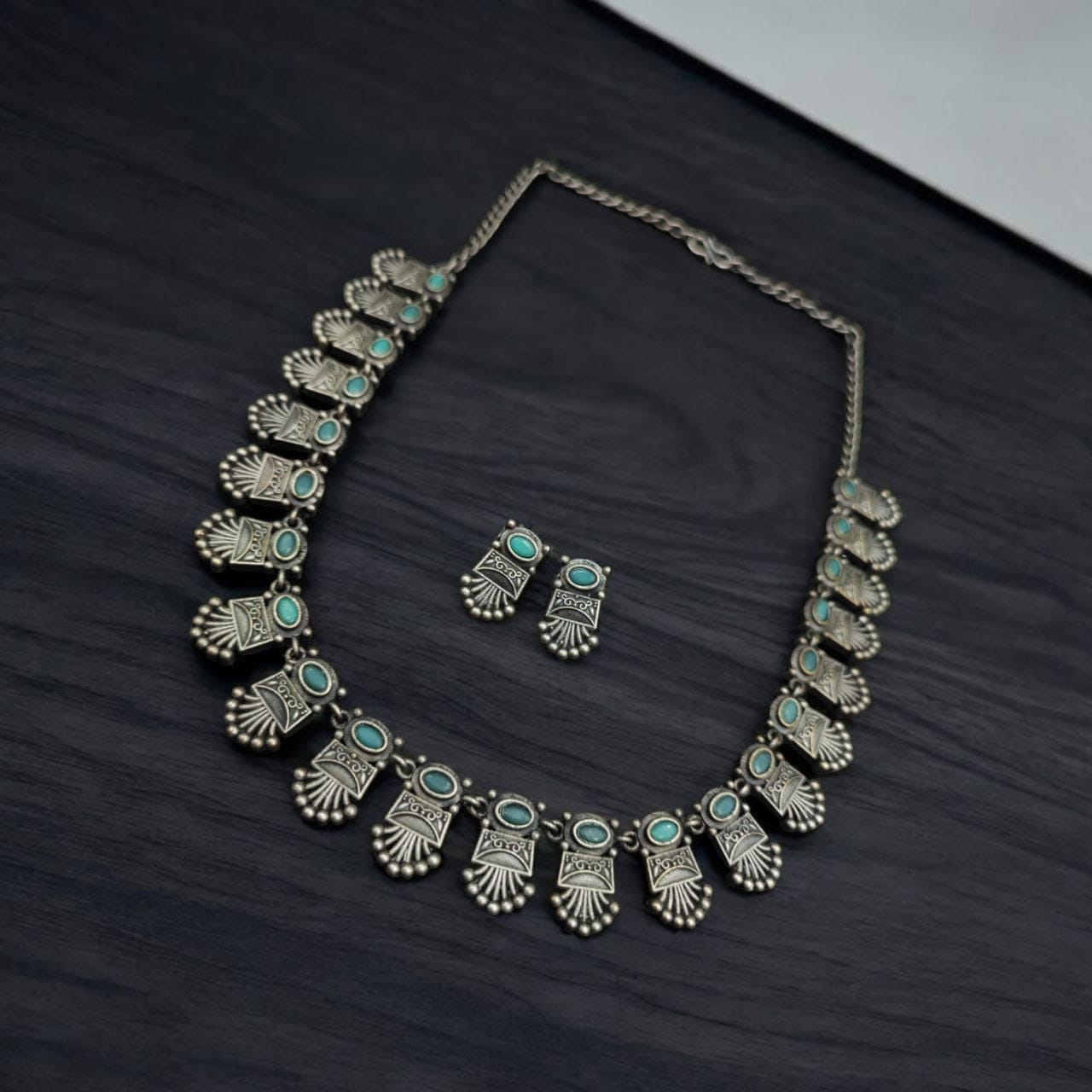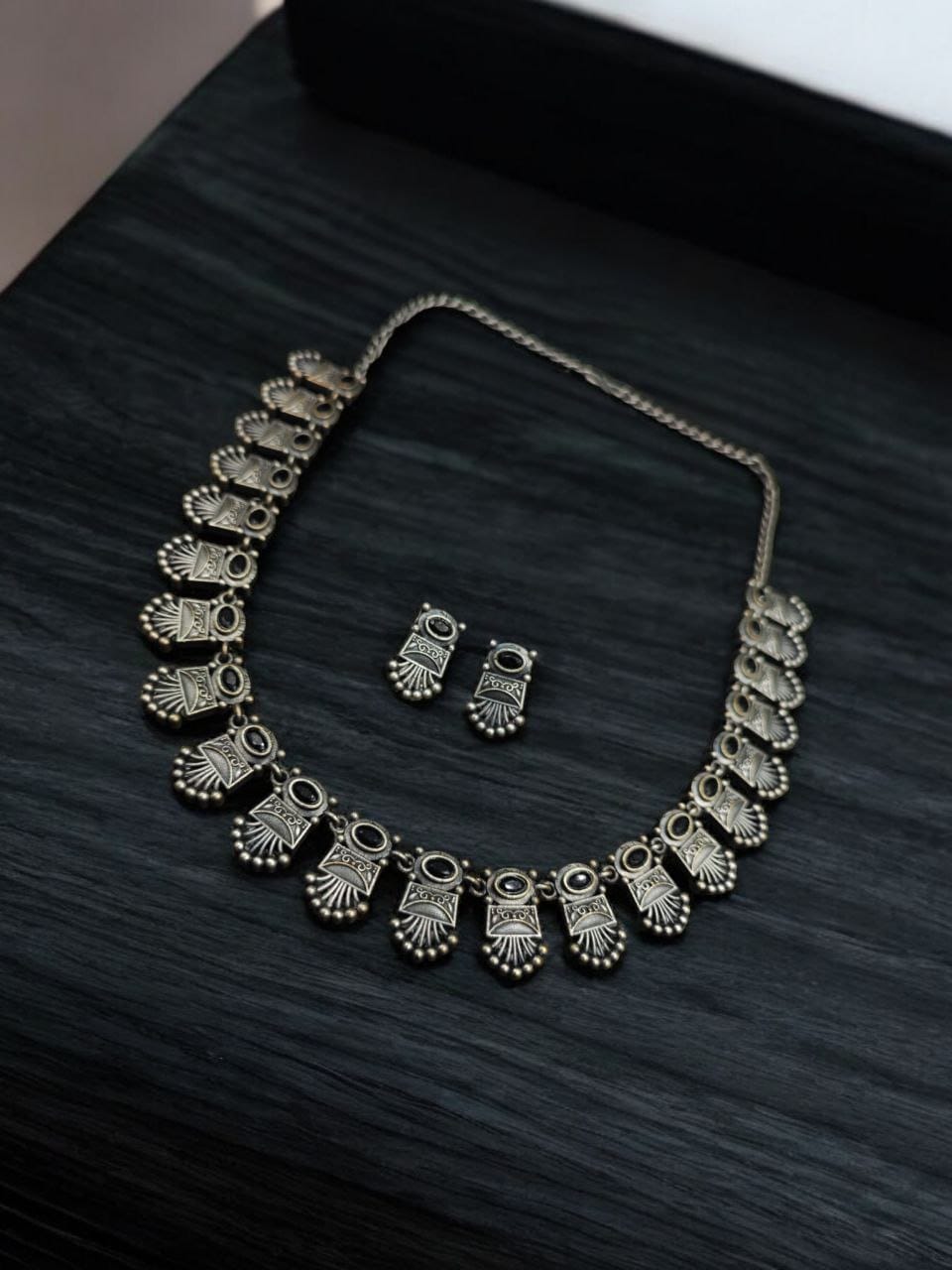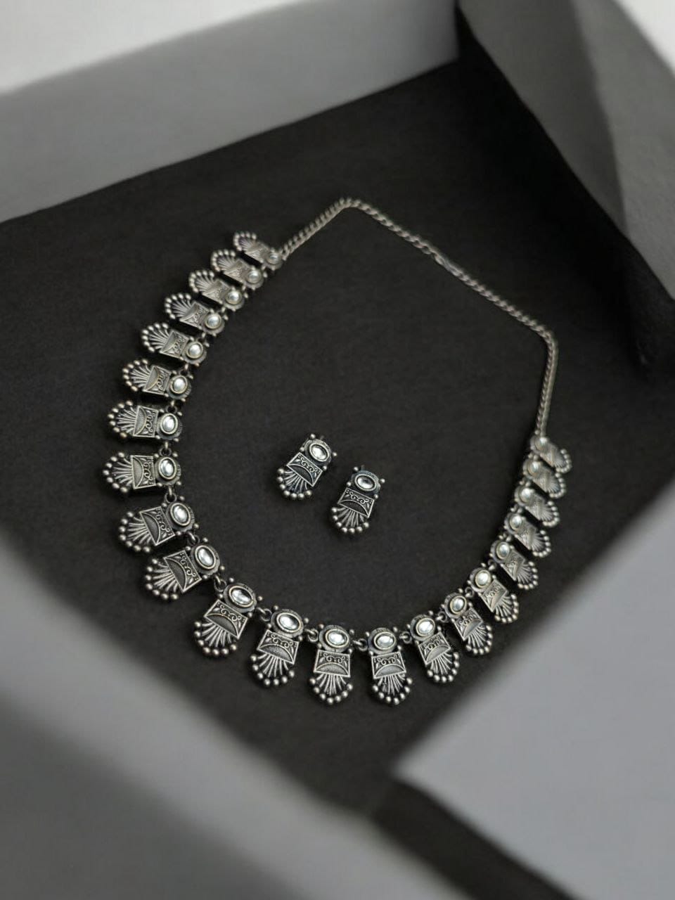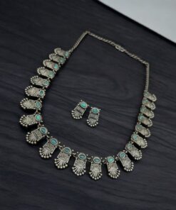 Made from high-quality materials, this Oxidized silver jewelry is built to last. The oxidized silver finish is resistant to tarnish and wear, ensuring that the set retains its beauty and luster over time. The secure clasps and sturdy construction guarantee that the necklace and earrings stay in place, giving you peace of mind while you enjoy your special moments.