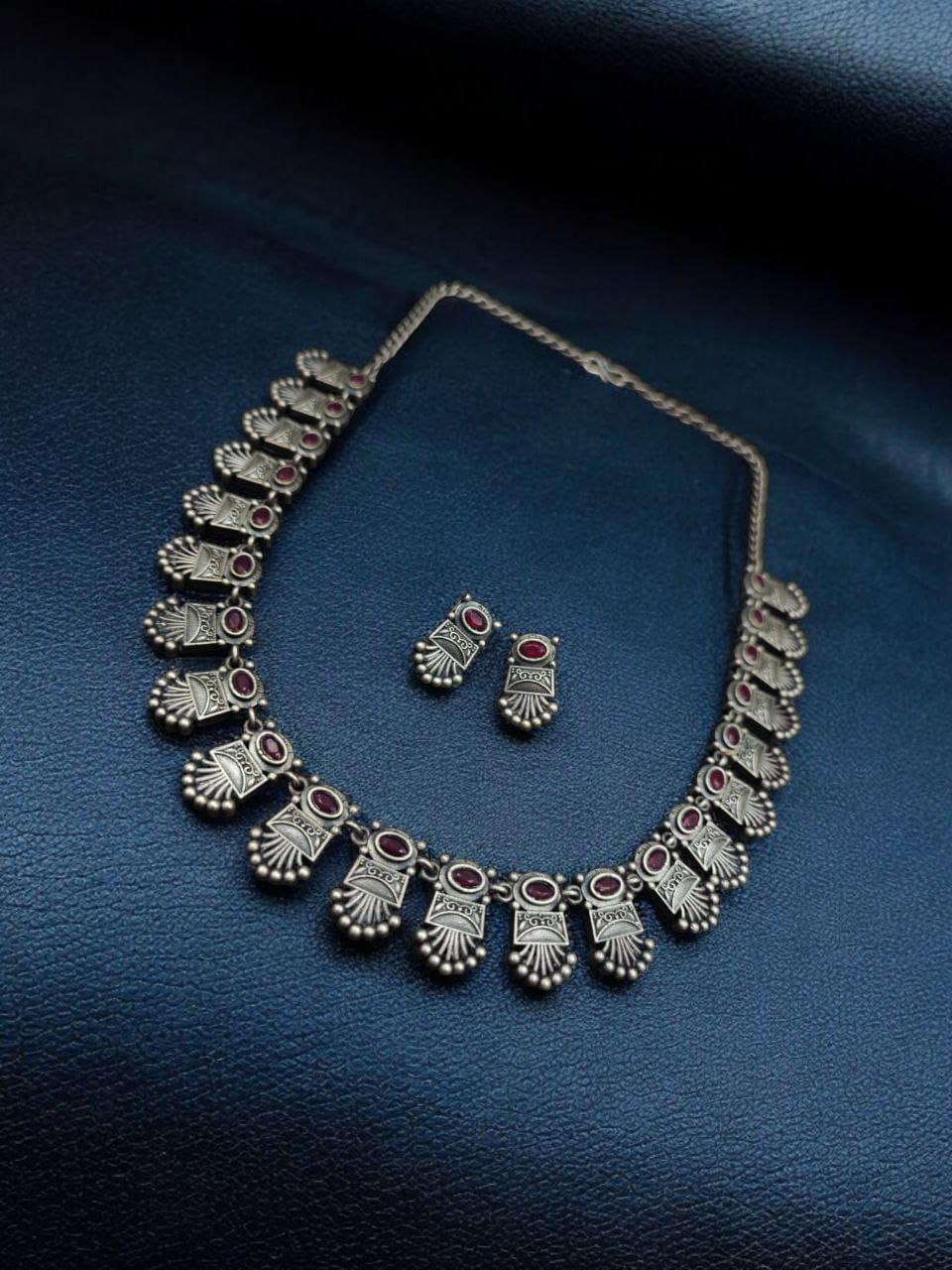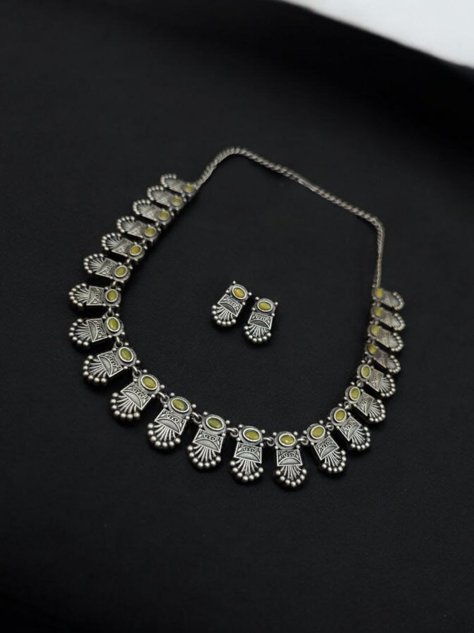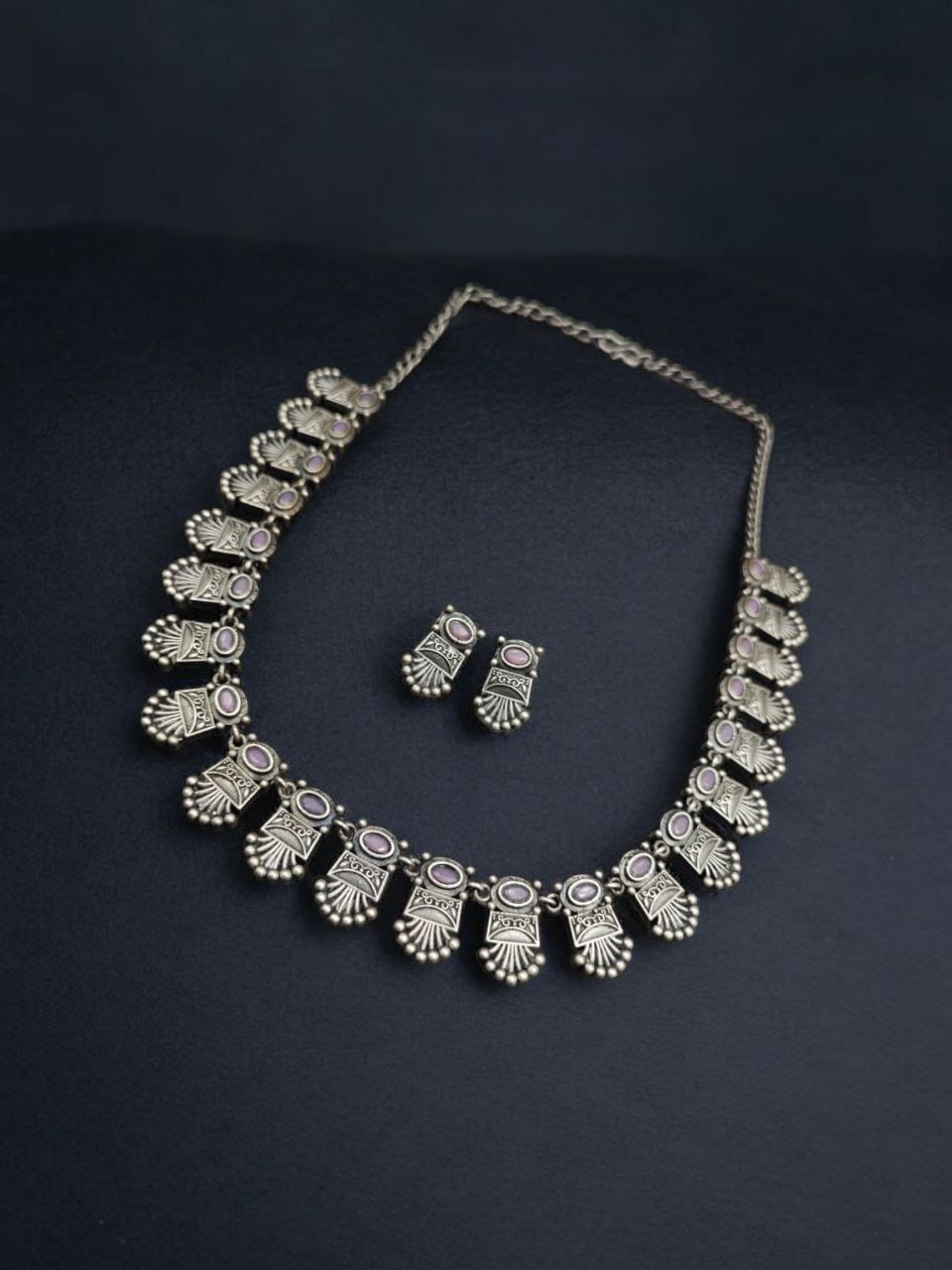 Made from high-quality materials, this Oxidized silver jewelry is built to last. The oxidized silver finish is resistant to tarnish and wear, ensuring that the set retains its beauty and luster over time. The secure clasps and sturdy construction guarantee that the necklace and earrings stay in place, giving you peace of mind while you enjoy your special moments.